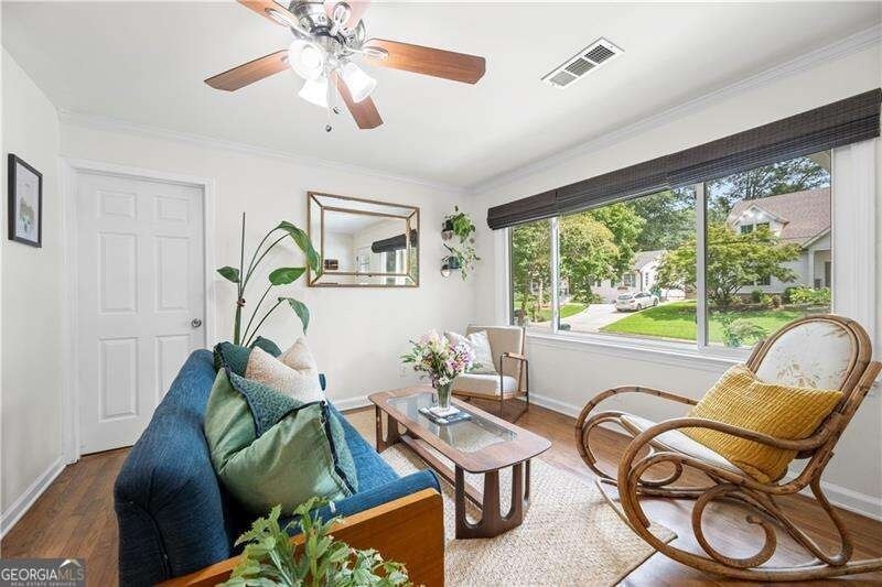 Vacant and ready for move in! Charming 3-bedroom, 2-bath home in the heart of Smyrna with hardwood floors throughout. The primary suite features a newly renovated bathroom and a walk-in closet. Enjoy a large fenced backyard, a big back deck for entertaining, and a covered front porch perfect for morning coffee or relaxing with friends. Located within walking distance to Smyrna Market Village, you can enjoy the new green space that hosts concerts, a weekly farmers market, popular restaurants, and a brewery opening next year. Taylor-Brawner Park and its well-known Food Truck Tuesdays are nearby, and the home backs directly to a park for easy access to green space. Just 12 minutes to The Battery and less than 15 minutes to Marietta Square, this home offers both convenience and a vibrant community atmosphere. 6 month rental option available. Can be rented furnished or unfurnished.