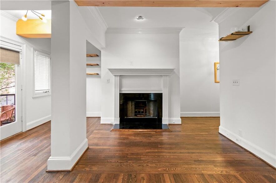 Experience the best of Buckhead living in this beautifully renovated 2-bedroom, 2-bathroom residence, where modern luxury meets an unbeatable urban lifestyle. This updated home features a bright, open floor plan with original hardwood floors, a gas fireplace, and a sleek kitchen complete with stainless steel appliances, white cabinetry, and modern backsplash. Ideal for remote work or relaxation, the unit includes a charming office nook with exposed brick and two private balconies perfect for morning coffee or evening cocktails. Both spacious bedrooms offer large closets and newly fully renovated ensuite bathrooms, providing a true roommate floor plan for maximum privacy. Convenience is key with an in-unit laundry room with extra storage space. The Crestwood offers a private fitness center, and the lease fee includes water service and two gated, covered parking spaces. You are perfectly positioned for ultimate walkability, just steps from the high-end dining and luxury boutiques of Buckhead Village, the Saturday morning Peachtree Road Farmers Market, and The Peach shopping center nearby. Come home to The Crestwood, a secured landmark building on the National Historic Register that offers a unique blend of timeless character and modern comfort in Atlanta s most desirable neighborhood.