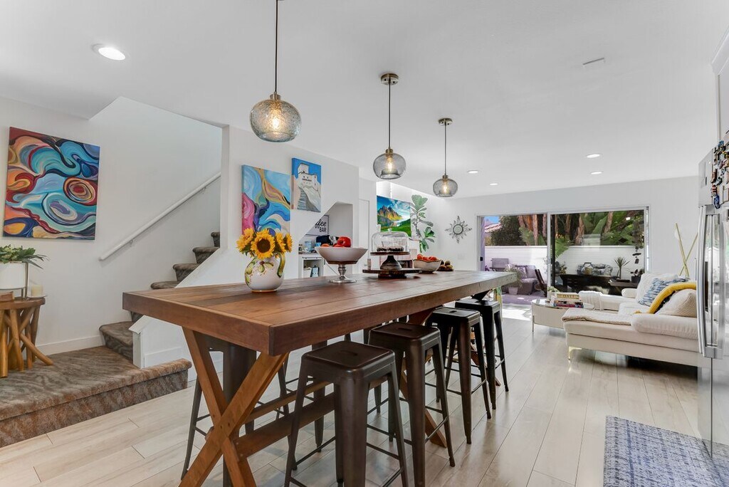 Experience modern coastal living in this beautifully furnished 2-bedroom, 2-bath townhouse located in Malibu’s serene Ramirez Canyon, less than 10 minutes from Pepperdine University. Perfect for faculty, visiting professionals, or anyone seeking an effortless Malibu lifestyle, this stylish home spans just over 1,000 sq ft and features vaulted ceilings, abundant natural light, and an open-concept layout that flows seamlessly to a private patio with peek-a-boo ocean views. The updated kitchen comes fully equipped right down to the cookware, dishes, and utensils, while the spa-inspired bathrooms feature a rain shower, skylight, and soaking tub. Every detail is included, from high-quality linens to tasteful furnishings, so you can simply move in and enjoy. Additional highlights include built-in closets, in-unit laundry, central A/C, a tankless water heater, and a private two-car garage with storage. Residents also enjoy a community pool and picnic area, all just minutes from Malibu’s beaches, dining, and shopping, and a quick, scenic drive to Pepperdine’s campus.
