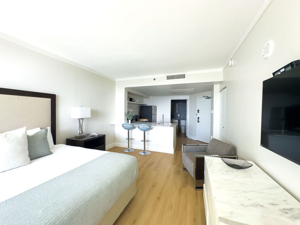 Welcome to Arya, located in Coconut Grove, offering a blend of luxury and home-like comfort. This apartment offers breathtaking views of Biscayne Bay. This apartment features a king-size bed, a private balcony, and a fully equipped kitchen with a fridge, microwave, dishwasher, and coffee maker. Enjoy the convenience of a private bathroom, high-speed Wi-Fi, and Smart TVs. Complimentary toiletries, plush linens, and bathrobes are provided. Guests can enjoy the rooftop fitness center with skyline views, squash courts, and locker facilities, as well as an outdoor pool and hot tub on the 8th floor overlooking the bay. Room service and dry cleaning are available upon request and for an additional fee. Free parking is available with one parking spot per reservation. Located steps from CocoWalk’s shops, restaurants, and cinemas, this apartment is ideally situated in the heart of art and culture near the Vizcaya Museum, Pérez Art Museum Miami (PAMM), and Adrienne Arsht Center. Family favorites such as Jungle Island, Seaquarium, Zoo Miami, and Fairchild Gardens are nearby. The apartment is also close to Brickell, Coral Gables, and the University of Miami. Check-in is at 4 PM and check-out is at 11 AM. Parties or loud gatherings are not allowed under any circumstances. Please keep balcony doors closed at all times. Do not place any objects that block or obstruct the blackout curtains. Please refrain from closing the main unit door unless you are occupying both sides of the property. Smoking of tobacco, marijuana, and vaping is strictly prohibited, and a penalty of $500 will be charged if evidence of smoking is found or if a party is held in the unit. Pets are not permitted. Includes 24/7 front desk assistance and on-site maintenance. [SI]