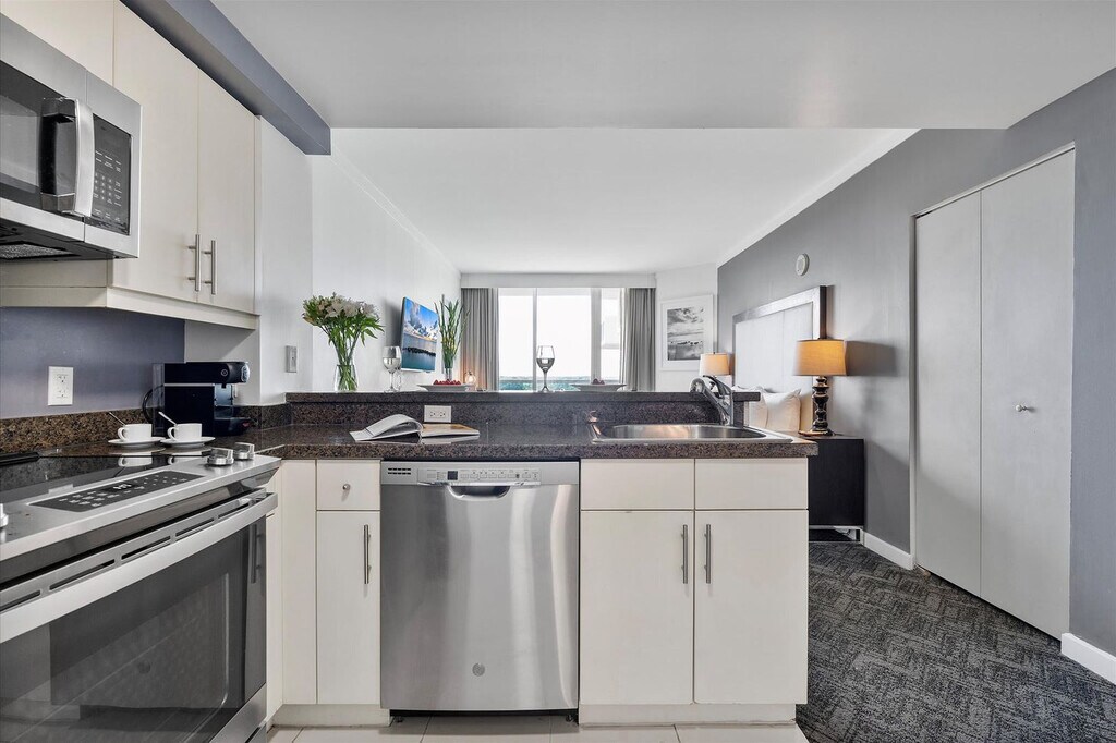 The advertised rate of $5,920/month is the lowest available price, based on a 30 day(s) stay with a move-in date of March 31, 2026. Rates vary depending on the duration of stay, season, and other parameters. For exact pricing and additional pricing components, please visit our website and enter your desired move-in and move-out dates. The rate is applicable when billed upfront; it can be higher if billed in multiple payments. Welcome to this studio in Coconut Grove, a calm and walkable neighborhood, where you can feel at home. The building's waterfront-view pool offers a quiet place to unwind. This studio features a king-size bed with hotel-quality linens, a private bathroom with plush towels and toiletries, a TV, and high-speed Wi-Fi. The fully equipped kitchen includes a fridge, microwave, dishwasher, and coffee maker. Bathrobes and thoughtful details are provided for your comfort. On-site maintenance is available from 10 AM to 5 PM to ensure everything runs smoothly during your stay. On-site self-parking is available for $33.90 per night with in-and-out privileges. A pack-n-play and high chair are available by advance reservation and subject to availability for an additional cost. Coconut Grove is one of Miami’s most walkable and historic neighborhoods, with leafy streets, a relaxed village feel, and many restaurants, cafés, and beautiful parks with waterfront paths. You’ll be steps from CocoWalk for dining, cafes, and boutique shops, Peacock Park and David Kennedy Park for bayfront walks, and The Barnacle State Park for historic gardens and shade. The Vizcaya Museum, Coral Gables, Key Biscayne, and Brickell are a short ride away. Pets are not permitted as per building regulation. No parties or loud gatherings are allowed. No smoking or vaping of any substance is allowed anywhere in the building or unit. Check-in is at 4:00 PM and check-out is at 11:00 AM. Includes a workspace-friendly layout. [SI]