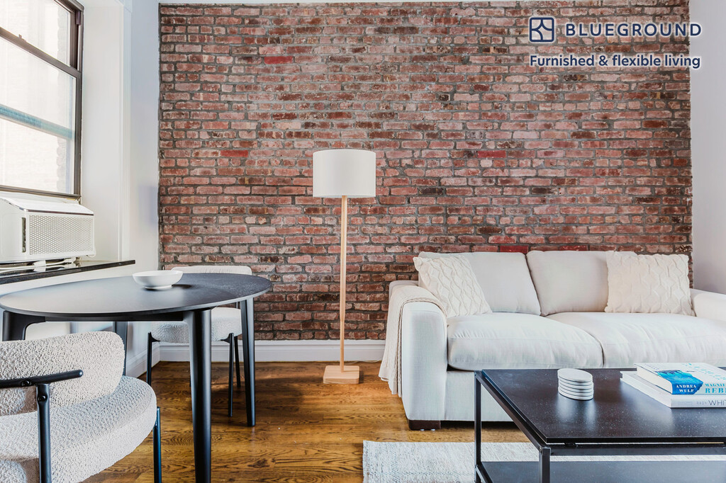 Feel at home wherever you choose to live with Blueground. You’ll love this pretty West Village furnished two bedroom apartment with its modern decor, fully equipped kitchen, and exquisite living room. Ideally located, you’re close to all the best that New York has to offer! (ID #NYC1574) The advertised rate of $8,870/month is the lowest available price, based on a 11 month(s) and 29 day(s) stay with a move-in date of April 7, 2026. Rates vary depending on the duration of stay, season, and other parameters. For exact pricing and additional pricing components, please visit our website and enter your desired move-in and move-out dates. The rate is applicable when billed upfront; it can be higher if billed in multiple payments. Brokers are welcome to reach out. Were you looking for an unfurnished lease? Try Blueground instead and upgrade from unfurnished to furnished living: - Furnished at rates comparable to unfurnished - No setup or furniture costs - save thousands - Move-in ready - save time, just bring your suitcase Designed with you in mind Gorgeous furniture, fully equipped kitchen, smart TV, and a premium wireless speaker are just a few of the amenities you’ll find inside this two bedroom apartment. Ideally located in New York, you’ll find a lot to love outside as well. When you’re ready to relax, you’ll be happy to discover every Blueground bedroom comes with superior quality mattresses, luxury linens, and cozy towels. We handle everything so you can simply show up and start living. This apartment also offers in-apartment laundry. Sleeping arrangements Queen Bed, 63in/160cm Queen Bed, 63in/160cm Amenities Building amenities unique to this two bedroom apartment include an on-site: - Dryer - Elevator - Washing machine - Pets allowed Arrival and ongoing support The entire apartment is yours to enjoy! Throughout your stay, you’ll have access to our Client Experience team through the Blueground App. You can schedule additional cleanings, submit maintenance requests, and view our neighborhood recommendations with just a few taps. We’ll share all details upon confirmation of your stay. Ideally Located This furnished rental is located in the West Village. Cute storefronts and some cobblestone streets give the charming neighborhood the feel of a quaint small town. Populated with shoppers, diners and art lovers. The historically artistic area has numerous piano bars, cabarets, and theaters to discover. Both Times Square and Wall Street are just 15 minutes away by subway. Other things to note This Blueground apartment has flexible lease options, allowing you to book it for one month, a year, or more. Pets are welcome, though weight limits and breed restrictions apply and may incur fees. Brokes CYOF. We take great pride in ensuring every photo displayed is shot in our own units with our actual furnishings. That said, we regularly refresh our decor and furniture arrangement, which may differ from what’s pictured. [SI]