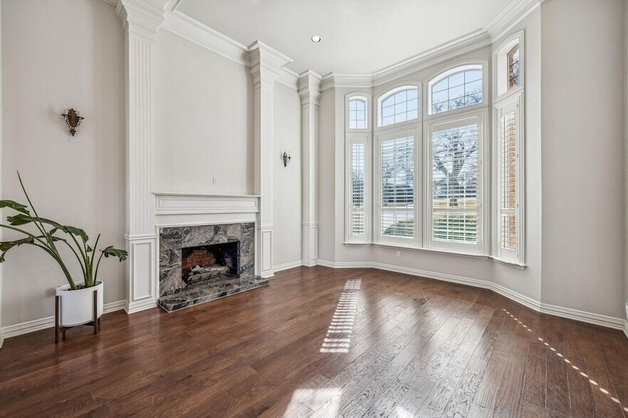 Exquisite luxury residence situated on a sprawling homesite in the highly sought-after enclave of Wichita Creek Estates in Flower Mound. Encompassing more than 5,000 square feet, this remarkable property seamlessly combines refined design, everyday comfort, and versatile living spaces all in a prime setting near top-performing schools, upscale retail and dining, scenic lake trails, and convenient access to DFW Airport. An impressive arrival experience begins with a dramatic spiral staircase, sophisticated entertaining areas, and expansive windows framing the resort-style grounds. Crafted for hosting on any scale, the gourmet kitchen showcases expansive prep surfaces, dual ovens, a convection microwave, integrated appliances, a catering pantry, generous cabinetry, and stylish shutters. The adjoining gathering space features a striking hearth, built-in beverage station, and abundant sunlight throughout. The secluded owner s retreat offers a peaceful escape, highlighted by a sitting area with curved windows and a spa-like bath featuring dual sinks, a deep soaking tub, an oversized walk-in shower, and an expansive closet. A distinguished study with vaulted ceilings and custom shelving provides an ideal workspace. The adaptable main level includes a private guest quarters, an additional suite with full bath and sauna, and a multi-purpose room perfect for a fitness studio, media lounge, or additional sleeping quarters. An added recreation area allows flexibility for extended household living or entertainment. Three additional bedrooms and two baths are located upstairs, providing ample accommodations. Outdoors, enjoy a private sanctuary with towering trees, manicured grounds, a shaded veranda, upper-level terrace, shimmering pool, and heated spa creating the ultimate setting for leisure and social gatherings. Offering both grandeur and inviting warmth, this exceptional property delivers elevated living in one of Flower Mound s most desirable communities.