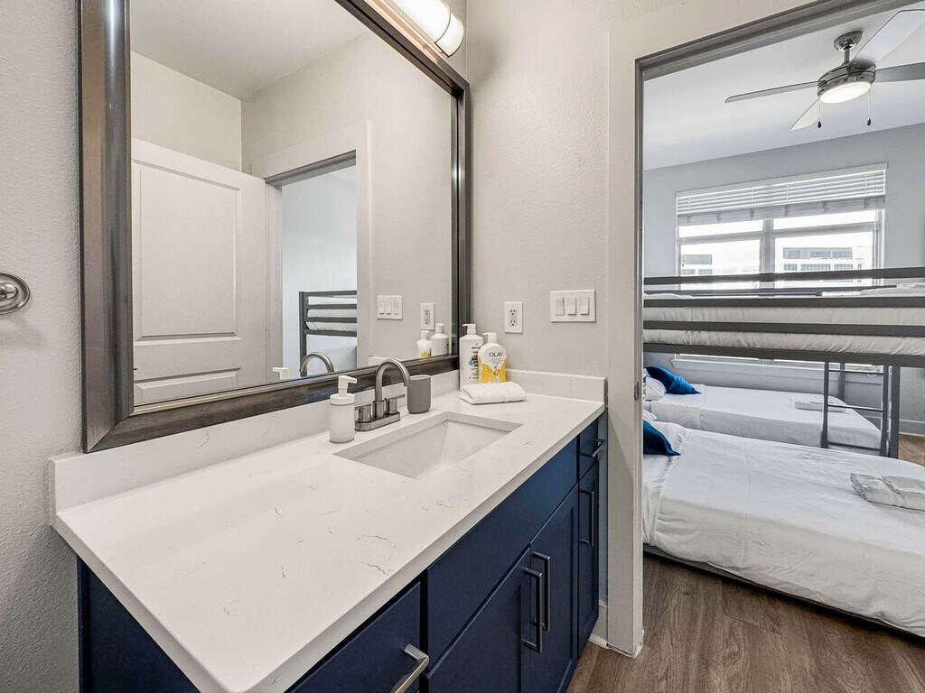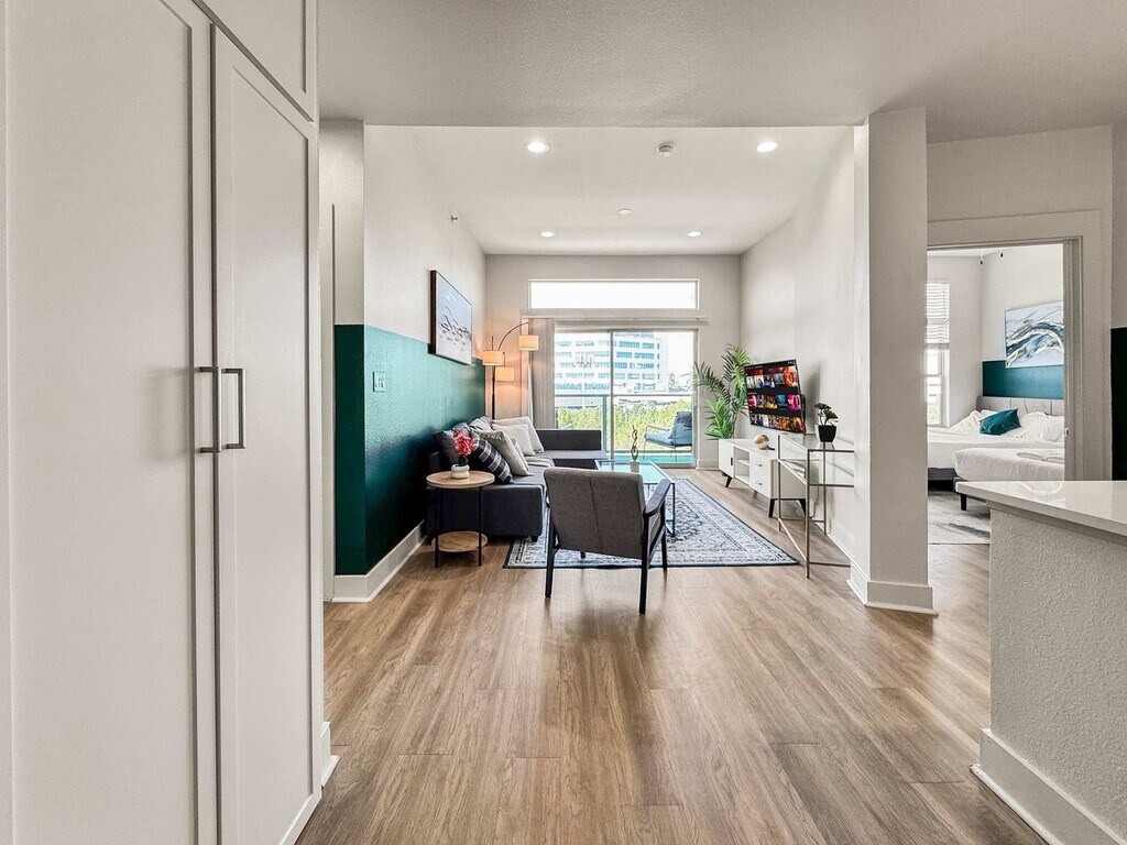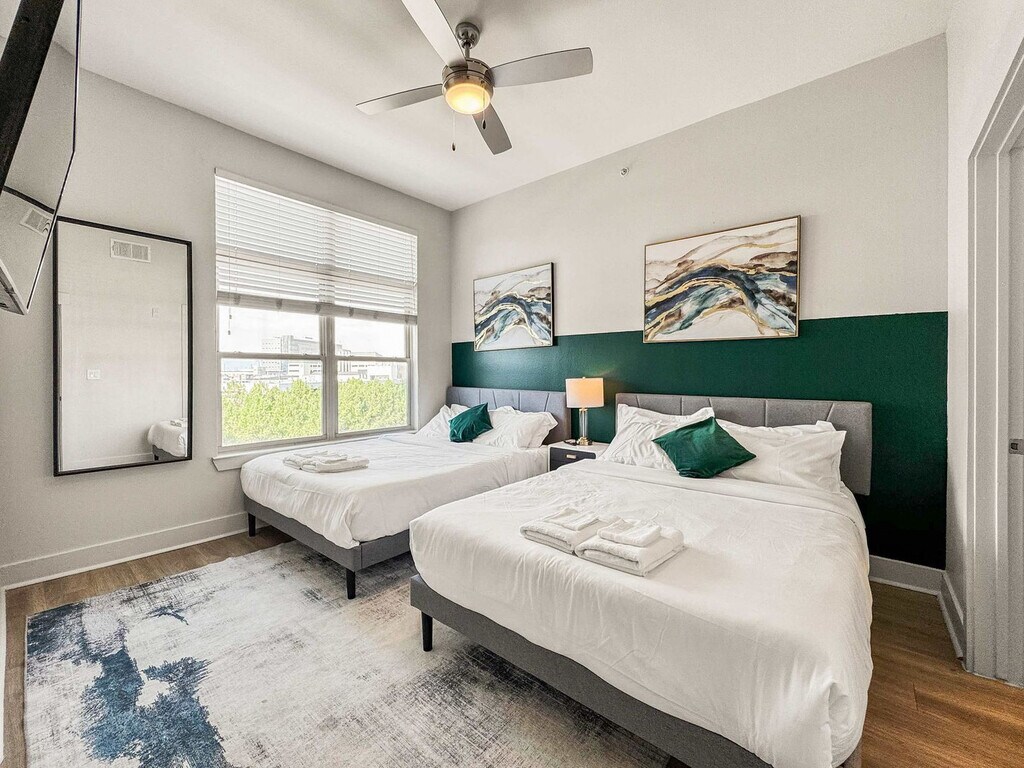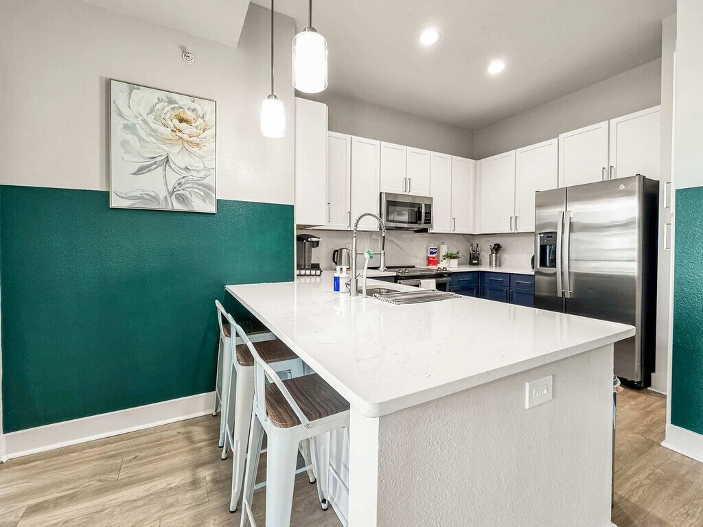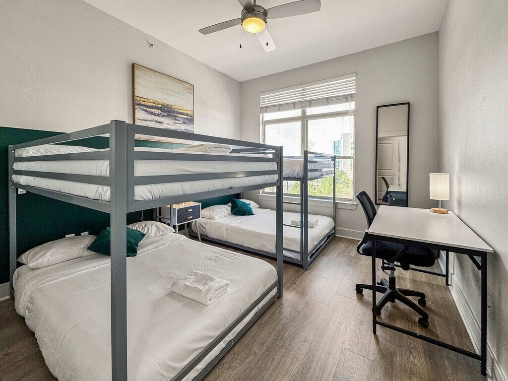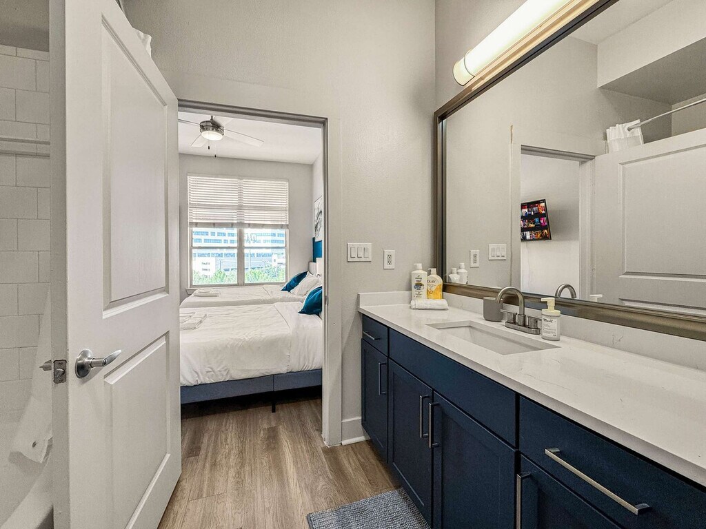 Enjoy the perfect Dallas stay in this modern and spotless 2-bedroom, 2-bath apartment with ultra-fast Wi-Fi. Rest in cozy beds, play tennis or pickleball, and explore nearby restaurants, parks, museums, and business hubs. Whether you're here for work or a longer visit, this apartment offers more charm and comfort than a hotel or standard rental. Feel at home in this cozy and modern apartment, perfect for a relaxing, stress-free stay. Enjoy an open living and dining area with LED lighting, contemporary furnishings, and large windows offering natural light and stunning night views. Warm wood floors add a touch of comfort and charm. The living room features a sofa bed, chair, coffee table, and a 60" 4K HDR Smart TV with Netflix. The kitchen is fully equipped with an oven, stove, fridge/freezer, dishwasher, Keurig coffee maker, water kettle, and all necessary glassware and silverware. Pets are allowed based on size, with an additional cleaning fee per pet: $25 per night for 1-4 nights, $200 for 5-29 nights, and $300 for 30+ nights. Please notify in advance to avoid cancellation. Explore the vibrant Dallas area with ease, as this apartment is conveniently located near a variety of restaurants, parks, museums, and business hubs. Whether you're in the mood for dining, outdoor activities, or cultural experiences, everything is within reach. Smoking is strictly prohibited inside the property, with a cleaning fee of $500 for any violation. Check-in time is after 4 PM, and check-out time is by 10 AM. Late check-outs without prior approval will incur additional charges. Please dispose of garbage in the designated bins to avoid attracting pests. Treat the property and its contents with respect, as any damages will be charged to the guest. No mail can be delivered to the property due to security concerns. For security, surveillance cameras are installed in hallways, and a Minut device is placed in the unit to monitor noise levels. Guest verification is required before your stay, including providing a valid government-issued ID and completing verification through our portal to receive check-in instructions. Verification must be completed within 24 hours of booking (1 hour for same-day bookings). Reservations that do not meet verification requirements may be canceled. The apartment is remote work-friendly with ultra-fast Wi-Fi, making it ideal for those who need to work from home during their stay. [SI]