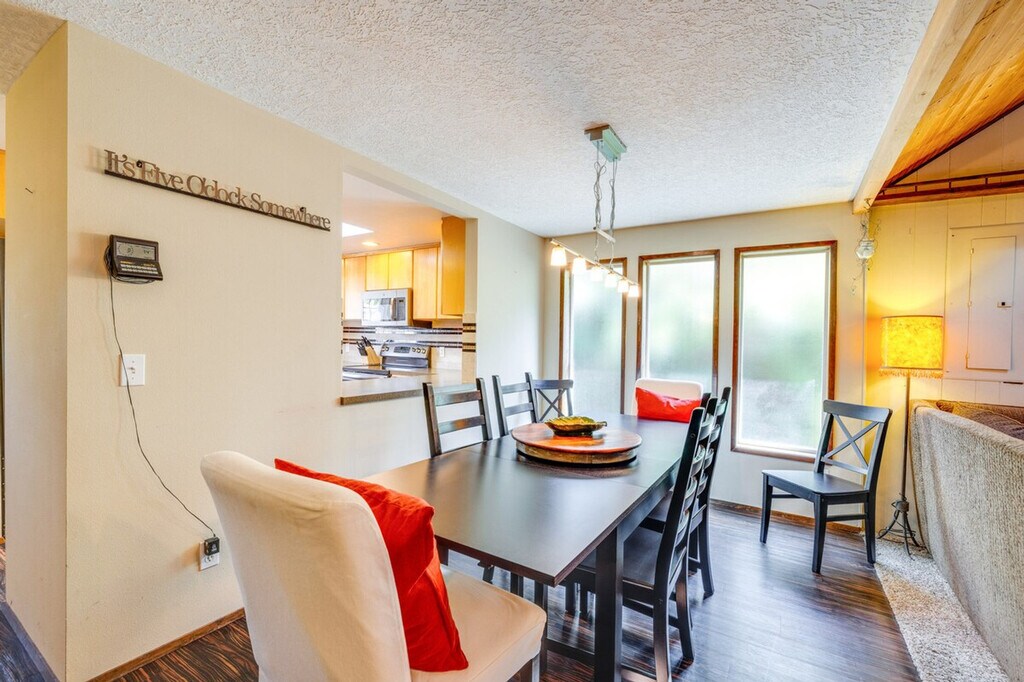 Experience the best of the Pacific Northwest and feel at home in this lovely 2-bedroom home in Ocean Park, WA. Located just minutes away from pristine beaches, golf courses, and state parks, this vacation rental offers the perfect place for your next coastal escape. Please note that 4 steps are required to enter and additional stairs to access the loft. This home features a wood-burning fireplace with wood provided, a fenced-in yard, a private yard, and a furnished patio. Enjoy the convenience of a smart TV, DVD player, dining table, board games, books, and an outdoor fire pit. The kitchen is fully equipped with cooking basics, a refrigerator, microwave, stove/oven, dishwasher, dishware and flatware, blender, coffee maker, toaster, and spices. Additional amenities include complimentary toiletries, free Wi-Fi, linens/towels, central AC and heating, an in-unit washer/dryer, a hair dryer, hangers, and an iron/board. Pets are welcome with a $150 fee, plus fees and taxes. Driveway parking is available for 3 vehicles. Catch some rays at Klipsan Beach, swing your clubs on the Surfside Golf Course, or venture out to the Long Beach Boardwalk. Smoking, events, parties, and large gatherings are prohibited. [SI]