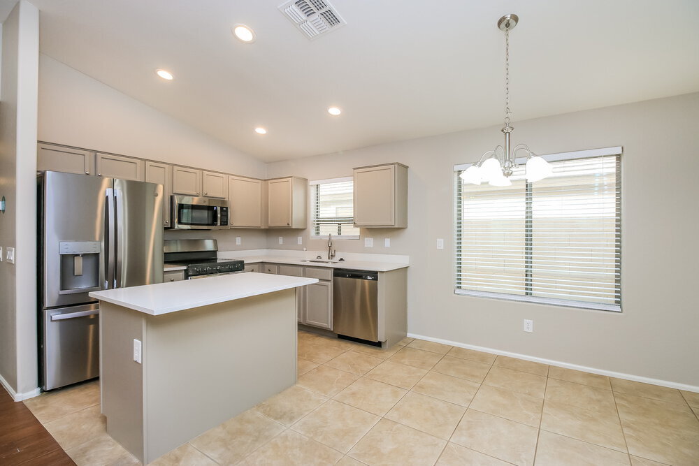 ¿Quieres hacer un tour por tu cuenta? Haga clic en el botón “Mostrar en” en la lista de esta casa o llame para inscribirse en una presentación autoguiada en el momento que mejor le convenga. Este hogar cuenta con la aplicación para el hogar inteligente Progress Smart Home - Progress Residential, que te permite controlar el hogar de forma segura desde cualquiera de tus dispositivos. Obtenga más información en Junto con su encantador exterior de estuco y su conveniente garaje adjunto, esta casa de alquiler en San Tan Valley, Arizona, cuenta con un patio privado cerrado y un espacioso interior con tres dormitorios, dos baños y un diseño abierto. Magníficos pisos de travertino y un techo abovedado con ventilador le dan la bienvenida a la sala de estar, que cuenta con abundante luz natural de las puertas corredizas de vidrio que conducen al exterior. La cocina es espaciosa, con una gran isla central y encimeras de cuarzo. Hay un amplio espacio para disfrutar de las comidas debajo de un candelabro tradicional en el comedor. Le encantará lo grande que es la suite principal, con sus paredes de colores neutros y su vestidor. El baño privado contiguo cuenta con una combinación de bañera y ducha. ¡Póngase en contacto con nosotros hoy mismo para reservar su visita!