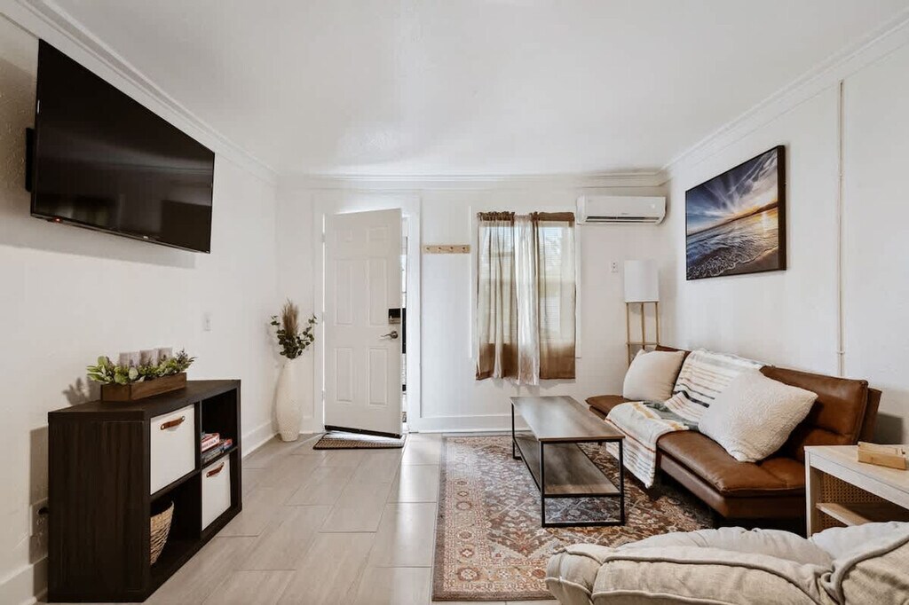 Welcome to this cozy 1-bedroom, 1-bathroom retreat nestled in a quiet Pensacola neighborhood. Perfect for couples, solo travelers, or those working remotely, this apartment offers a full kitchen, fast Wi-Fi, a smart TV, and an in-unit washer/dryer. Enjoy the convenience of a private entrance and included parking, all just minutes from downtown, beaches, and local dining. The apartment features a fully equipped kitchen, ideal for preparing your favorite meals. Relax in the living area with a smart TV and enjoy the convenience of an in-unit washer/dryer, making both short getaways and extended stays comfortable and convenient. This pet-friendly apartment welcomes well-behaved dogs with prior approval and a fee of $99 per stay. Private parking is included for your convenience. Situated in a tranquil neighborhood, this apartment is just minutes away from downtown Pensacola, beautiful beaches, and a variety of local dining options, offering both relaxation and entertainment at your doorstep. Please maintain quiet hours between 10 PM and 8 AM. Smoking or vaping inside the apartment or on the property is prohibited and will incur a $200 fee. Unauthorized pets will result in a $200 fee. Additional cleaning fees apply for glitter or confetti use, and any damages or excessive mess may incur further charges. Late check-out is available upon request, subject to availability, with a fee of $60 per hour if not vacated by the agreed time. Failure to adhere to these rules may result in cancellation of the booking and forfeiture of payment.