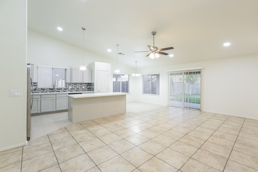 ¿Quieres hacer un tour por tu cuenta? Haga clic en el botón “Mostrarse” en la lista de esta casa o llame para registrarse para una presentación autoguiada en el momento que mejor le convenga. Esta casa de alquiler de un solo piso en Phoenix, Arizona, cuenta con un garaje contiguo y un patio cerrado que acepta mascotas con un césped, además de un diseño de cuatro dormitorios y dos baños. Dos ventanas arqueadas inundan la sala de estar con abundante luz natural, y le encantará la sensación de amplitud y amplitud del piso de losa y el techo extra alto. La cocina está bien equipada con electrodomésticos de acero inoxidable de primera calidad, una bonita salpicadura de azulejos y mucho espacio de preparación gracias a la gran isla central. Hay espacio de almacenamiento adicional en la despensa. Justo después de la lavandería en el vestíbulo, encontrará una encantadora ventana panorámica y un vestidor en la suite principal. Una puerta arqueada conduce al baño privado. ¡Venga a realizar su visita personal hoy mismo!