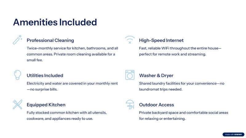 Property Id: 2225179 ROOM FOR RENT in CO-LIVING HOUSE with OTHER PROFESSIONALS. Basic Details: * Rent $750/month + $125 utilities (wifi, water, electric, on-site laundry) * Optional Bed provided * Shared bath with 1 other person * Furnished homely common areas for relaxing * Full kitchen with pots and pans, utensils * Dedicated driveway parking * On-site laundry * All members undergo online application and background check Move in: Deposit + Stable Income & Job (need proof during application) Tours available every day! CALL / TEXT DANIEL ON