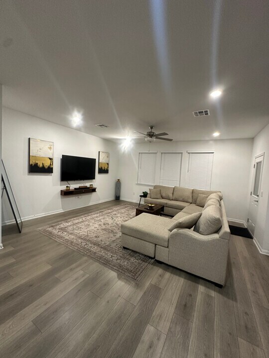 Property Id: 1569371 Enjoy a stylish experience at this centrally-located place. Newly Constructed house tastefully furnished in a mid century modern style. Located under a 30 minute drive from Central Austin. This house boasts a unique charm of an open layout, modern amenities, stainless steel appliances, hardwood floors, quartz countertop and a spacious kitchen. The space It is a newly constructed single family home beautifully furnished and equipped to be your home away from home.