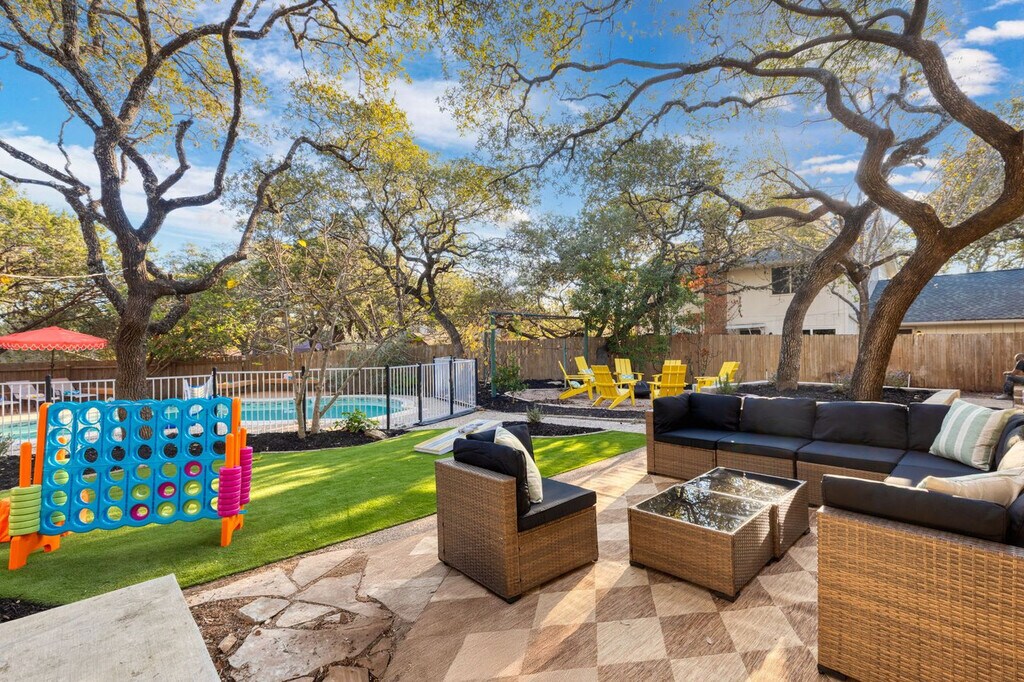 The advertised rate of $6,020/month is the lowest available price, based on a 1 month(s) stay with a move-in date of April 12, 2026. Rates vary depending on the duration of stay, season, and other parameters. For exact pricing and additional pricing components, please visit our website and enter your desired move-in and move-out dates. The rate is applicable when billed upfront; it can be higher if billed in multiple payments. Feel at home in this 4-bedroom home in San Antonio, Texas, comfortably accommodating up to 14 guests. This stunning home is perfect for families, friends, or multi-generational getaways. This home is jam-packed with amenities, including a fully stocked kitchen with high-end stainless appliances, a large refrigerator, ample cabinetry and cooking space, and a coffee maker with Keurig and drip options. The living room features a 65” smart TV and a large plush sofa. Enjoy movie nights in the dedicated movie theater with a smart TV and sleeper sofa. The spectacular backyard offers a private pool, hot tub, outdoor patio, BBQ grill, fire pit, putt putt, giant Jenga and Connect 4, corn hole, poolside loungers, beach essentials, and pool volleyball and basketball. Up to 2 dogs are allowed for $125 per stay, no cats please. Located in a quiet neighborhood, this home offers easy access to San Antonio’s top attractions, dining, and entertainment, while still providing a peaceful private retreat. Nearby attractions include the San Antonio River Walk (~18 miles), The Alamo (~18 miles), San Antonio Missions National Historical Park (~19 miles), SeaWorld San Antonio (~15 miles), and Natural Bridge Caverns (~30 miles). Enjoy nearby restaurants such as El Mirasol (Mexican & Tex-Mex) (~2.5 miles), Paesanos 1604 (Italian) (~3 miles), Myron’s Prime Steakhouse (Steak & Seafood) (~2.5 miles), Max’s Wine Dive (Modern American) (~2.5 miles), and Frederick’s Bistro (French-Inspired Cuisine) (~4 miles). Check-in is at 4pm and check-out is at 10am. No parties are allowed and violations may result in immediate termination of the stay. Guests must be 21 years or older to book this property. Bedroom 2 features a dedicated workspace, and bedroom 4 also features a dedicated workspace. Registration Number: STR-25-13501033 [SI]
