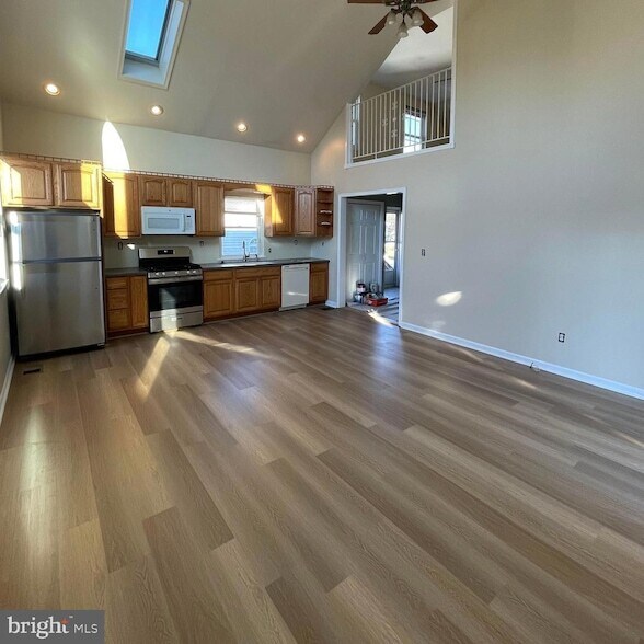 Great property available for RENT starting June 2026! This single family home with a cozy covered front porch is located in Hatboro Borough, and features newer carpeting and fresh paint throughout most of this home. The great room and kitchen are located in the rear, with soaring 2-story vaulted ceilings with skylights and luxury vinyl plank floors, with sliding glass doors to the new deck and fenced rear yard. The kitchen features oak cabinets, new stainless steel refrigerator and stainless steel gas range, a built-in microwave oven and a dishwasher. The mud room is off the side entry and leads to the first floor laundry room, kitchen and living room. There are three bedrooms, two are located on the first floor, along with a remodeled full bathroom. The second floor features a large loft area, great for a home office or playroom, and a main bedroom suite with a private full bathroom, sitting room or office/play area. Other features include gas heat and central air conditioning, full basement, gas cooking and a shed in the fenced rear yard. Great location in a great neighborhood, Hatboro/Horsham school district, and just minutes to County Line Rd, York Rd and the PA Turnpike - and a short walk to downtown Hatboro! Dogs allowed on a case by case basis.