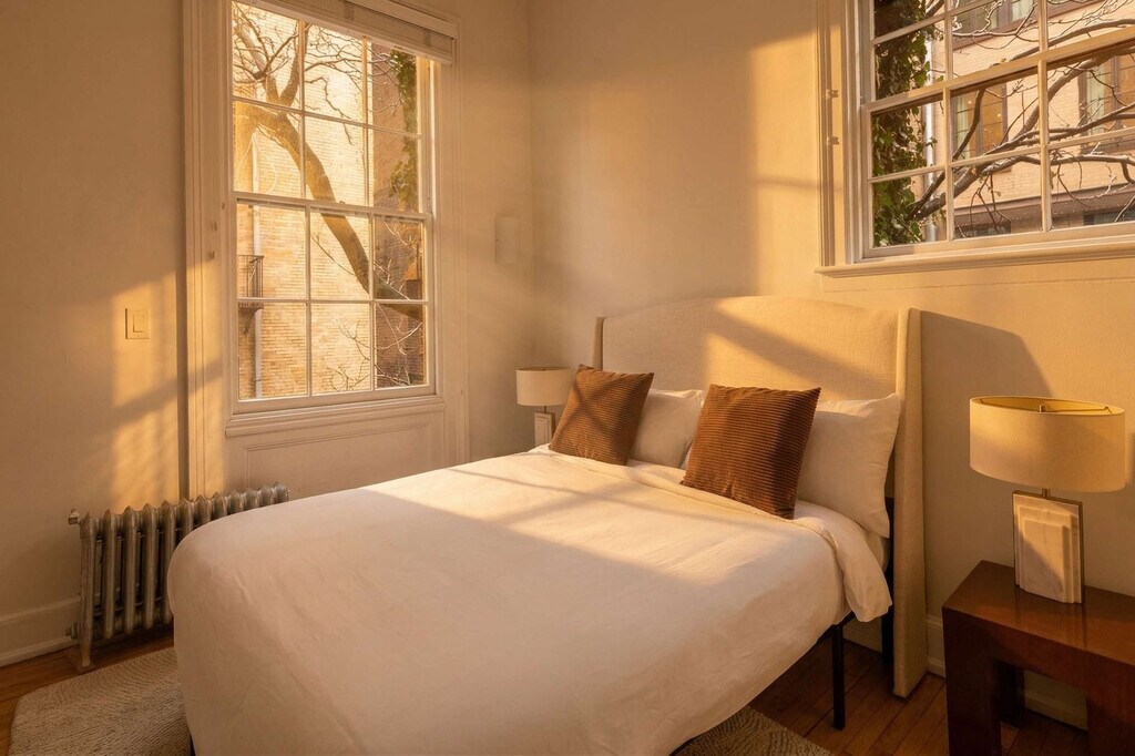 The advertised rate of $11,796/month is the lowest available price, based on a 30 day(s) stay with a move-in date of January 6, 2027. Rates vary depending on the duration of stay, season, and other parameters. For exact pricing and additional pricing components, please visit our website and enter your desired move-in and move-out dates. The rate is applicable when billed upfront; it can be higher if billed in multiple payments. Feel at home in this grand 1-bedroom Greenwich Village apartment, located on the second floor of a meticulously maintained townhouse. This extra-large apartment combines historic elegance with modern upgrades. Sunlight pours through oversized south-facing windows, highlighting soaring 11.5-foot ceilings, two decorative marble fireplaces, original wide-plank floors, and antique crystal chandeliers throughout the main living spaces. The renovated eat-in kitchen includes a window, new appliances, and thoughtful storage, while the updated bathroom features a spacious glass-enclosed shower. Practical amenities include an in-unit washer/dryer and through-the-wall split A/C systems. A south-facing bonus room serves perfectly as a second bedroom, guest suite, or dedicated home office. Nestled on a charming Village street, the residence is within walking distance of Washington Square Park, NYU, and Astor Place, with nearby subway access at 8 St–NYU (R/W), Astor Place (6), and West 4 St (A/C/E/B/D/F/M), providing seamless connectivity throughout Manhattan. Excessive use of A/C (exceeding $250/month) will be billed back to guests after move-out. Smoking is not allowed on the property. [SI]