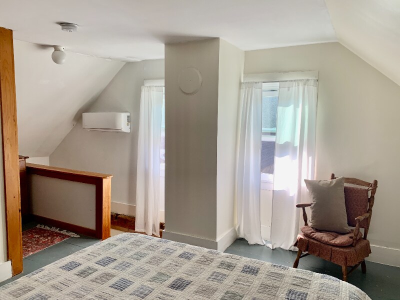 Property Id: 2331056 Rent furnished or unfurnished. Duplex: Enter through french-style doors to charming, window-filled great room on main floor (living/kitchen) with 2nd floor bedroom. A wide south-facing porch on acres of fields and forest ( a pet favorite!). Duplex consists of this listing and a 2-bedroom unit (solo, quiet occupant, in 2-bedroom). Fully stocked with quality amenities including Roku smart tv and blackout curtains. Will discuss deposit, pet fees, etc. for traveling professionals Utilities Included: Electricity, Heat, A/C, Water and Trash, Snow Removal. Starlink wifi included. MiniPump electric heat and A/C included. Shared washer and dryer in building (share with one other tenant)