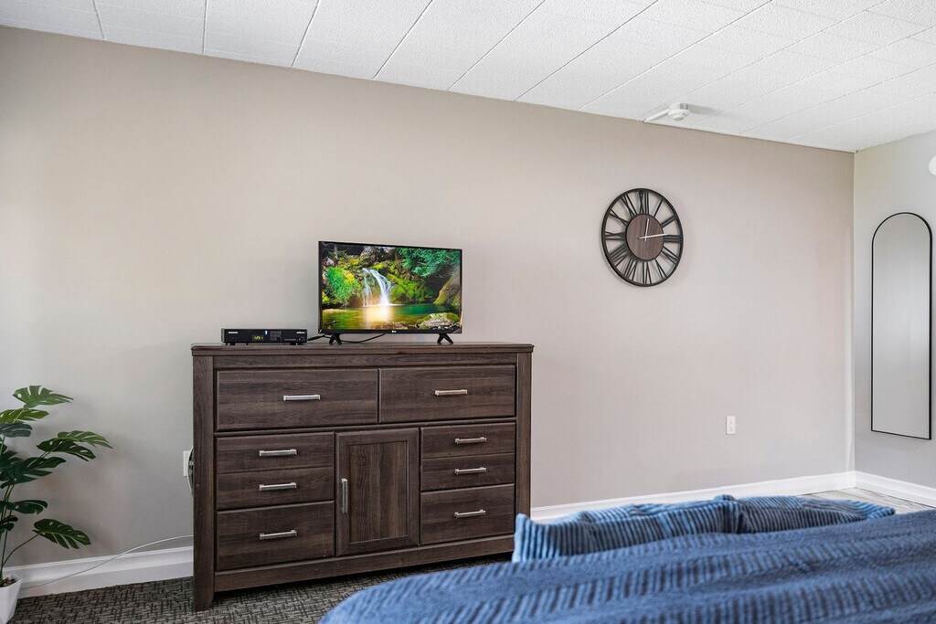 The advertised rate of $2,110/month is the lowest available price, based on a 30 day(s) stay with a move-in date of May 3, 2026. Rates vary depending on the duration of stay, season, and other parameters. For exact pricing and additional pricing components, please visit our website and enter your desired move-in and move-out dates. The rate is applicable when billed upfront; it can be higher if billed in multiple payments. Feel at home in this stylish and spacious studio suite in Congers, New York. This newly renovated suite is thoughtfully designed to offer comfort and elegance. The fully equipped kitchen features a stove, oven, range hood, microwave, coffee machine, and complete kitchen essentials, allowing you to prepare your favorite meals with ease. The suite features a comfortable queen-size bed and a sofa bed, making it ideal for up to 3 guests. Stay entertained with a flat-screen TV and enjoy year-round comfort with air conditioning and heating. The private porch offers a tranquil space to relax and unwind. For your convenience, you'll find a vending machine on-site stocked with a variety of snacks and drinks. Ample parking spaces are available on a first come first serve basis. If you arrive and do not see any parking space, please let us know so we can double-check and assist you. Take advantage of Rockland Lake State Park nearby, offering outdoor activities such as biking, swimming, boating, fishing, and hiking. You can also enjoy and have access to picnic areas, tennis courts, and golf courses. Congers Lake is a local gem known for its scenic views, serene walking trails, and relaxing ambiance, just a short distance away, perfect for strolls, outdoor relaxation, bird watching, and enjoying nature's beauty. Congers is conveniently located for day trips to New York City, with direct drive or public transit options making it easy to enjoy the sights and sounds of the city and return to the tranquility of your suite. Wi-Fi is available. Transportation: Airports: • Westchester County Airport (HPN): Approximately 30 miles away, this is the nearest airport offering domestic flights. • LaGuardia Airport (LGA): About 35 miles from the suite, serving both domestic and international flights. • John F. Kennedy International Airport (JFK): Roughly 45 miles away, offering a wide range of international flights. • Newark Liberty International Airport (EWR): Located about 50 miles away, another major airport with extensive domestic and international services. Public Transit: • Metro-North Railroad: The nearest station is in Tarrytown, about 10 miles away. This line provides direct service to Grand Central Terminal in New York City. • Bus Services: Rockland Coaches (Coach USA) offers commuter bus services to Manhattan from nearby stops in Congers. • Local Buses: Transport of Rockland (TOR) operates local bus routes connecting various parts of Rockland County, including routes to shopping centers, parks, and other nearby towns. Nearby Attractions: • Harriman State Park: A vast natural haven offering over 200 miles of hiking trails, fishing, boating, and camping. A perfect spot for outdoor enthusiasts. • Bear Mountain State Park: A scenic park featuring hiking trails, picnic areas, a zoo, an ice rink (seasonal), and stunning views from Bear Mountain summit. • Rockland Lake State Park: Located just minutes away, this park offers two Olympic-sized swimming pools, hiking trails, a golf course, and boating on Rockland Lake. • Edward Hopper House Museum & Study Center: Located in nearby Nyack, this museum celebrates the life and works of renowned American artist Edward Hopper. • Palisades Center Mall: One of the largest shopping malls in the United States, offering a variety of shops, restaurants, a movie theater, and entertainment options like an ice rink and a ropes course. • The Shops at Nanuet: An open-air shopping center with a variety of retail stores, dining options, and a movie theater. Historical Sites: • Stony Point Battlefield State Historic Site: Learn about a crucial battle during the American Revolutionary War. • DeWint House: A historic site in Tappan, where George Washington stayed during the war. Cultural Experiences: • Rivertown Film Society in Nyack: Offers independent and foreign films in a historic theater setting. • Rockland Center for the Arts (RoCA): Provides art exhibits, workshops, and performances. Family-Friendly Activities: • LEGOLAND Discovery Center: Located in nearby Westchester, perfect for a fun day out with kids. • Rockland Boulders Baseball: Catch a minor league baseball game at Palisades Credit Union Park. Local Dining: • The Station Kitchen and Bar: Located in Congers, this restaurant offers a mix of American cuisine with a cozy atmosphere. • Rivertown Taps: A popular spot in Nyack for craft beers and pub food. • 8 North Broadway: An upscale dining option in Nyack, specializing in Mediterranean cuisine. [SI]