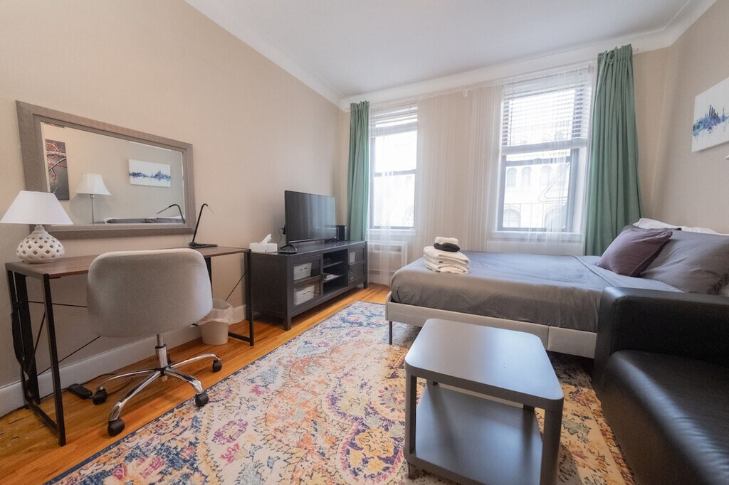 The advertised rate of $6,442/month is the lowest available price, based on a 30 day(s) stay with a move-in date of May 19, 2026. Rates vary depending on the duration of stay, season, and other parameters. For exact pricing and additional pricing components, please visit our website and enter your desired move-in and move-out dates. The rate is applicable when billed upfront; it can be higher if billed in multiple payments. Experience the comfort and convenience of this stylish, fully equipped studio on the second floor (two flights of stairs) of a walk-up building. Feel at home in this cozy apartment, ideal for extended stays and offering everything you need for a relaxing and productive time in the city. This apartment features a fully equipped kitchen with a large refrigerator, stovetop, oven, microwave, toaster, and all the utensils and cookware you need. It also includes a plush queen-size bed, comfy couch, work desk, mirror, fresh linens, towels, iron, hairdryer, access to a washer and dryer in the basement, and an AC unit for climate control. Wi-Fi and all utilities (heat, hot water, gas, electricity) are covered. Located on the Upper East Side, this apartment is surrounded by posh buildings, flagship boutiques, and world-class museums. Explore Museum Mile, home to the Metropolitan Museum of Art, the Solomon R. Guggenheim Museum, and the Cooper Hewitt, Smithsonian Design Museum. Madison Avenue's lavish boutiques are also nearby. Subway lines Q at 72nd Street, 6 at 77th St, 6 at 68th St, Q at 86th Street, and F Q at 63rd Street are all within walking distance, as is the M15 Bus at E 74th & 2nd Ave. Smoking inside or outside of the house will result in an automatic loss of security deposit. Pets are not allowed in the property, and a fine of $500.00 will be charged if this rule is violated. All guests must respect quiet hours ranging from 10 pm to 7 am. You cannot receive mail at this address, please consider opening a PO Box. Kindly note that a $350 refundable security deposit is required and will be collected directly by the partner after your booking is confirmed. The security deposit will be handled through direct communication with the partner and is not processed automatically. [SI]