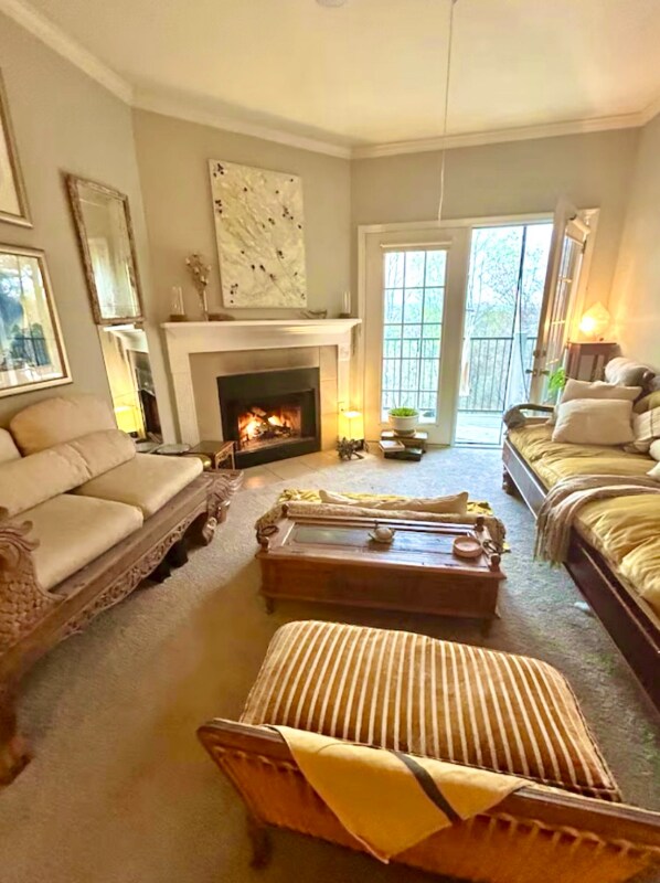 Property Id: 2126712 Beautifully furnished 2 Bedroom, 2 full Bath waterfront condo only 15 minutes to Downtown Asheville! Private, corner unit w views out to uninterrupted nature. Open plan layout: Fully equipped Kitchen, Dining, Livingroom w fireplace that leads to Terrace with views to the Blue Ridge Mountains, the water below and a large grass lawn (wBBQ) that's bordered by tall trees for a full display of Asheville's famous Fall colors. Slumberland King bedroom w en-suite bathroom w deep soaking tub and walk-in closet. Double bed guest room (or den/library) with 2nd full bathroom/powder room. Tasteful, antique English furniture throughout. In-unit Laundry room with W/D. Linens, towels and dishware included. Community Amenities: Gated, furnished Pool Area w gunnite Pool, Fitness Room, Clubhouse w office for tenant use, miles of wooded Walking & Hiking Trails, Dog Park, Playground, Carwash, off-street Parking. A quiet, bucolic home in the mountains only 15 min to Downtown AVL and 10 min to West AVL!