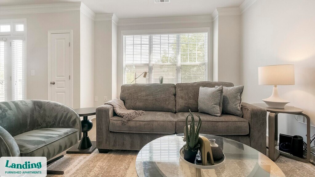 Landing offers flexible lease terms from weeks to months. Please always visit our website or contact us for the latest pricing & availability. Stay longer, save more: 6-Month Minimum base rent: starts at $2421/mo 12-Month Minimum base rent: starts at $2250/mo Landing offers flexible leases across a network of over 35,000 fully-furnished apartments throughout 375+ cities so you can rent on your terms, practically anywhere, and avoid the hassle of paying deposits or application fees. Visit to learn about all the benefits of a Landing membership, see our competitive up-to-date pricing, explore available apartments, take virtual tours, and make reservations online without jumping through traditional rental hoops. Landing's apartments at The Arboretum are designed for comfortable, easy living, with the ability to stay as long as you like. Experience living with Landing Every apartment is outfitted with all the modern essentials including: custom-designed furnishings, a fully-equipped kitchen with deluxe stainless steel appliances, a gourmet coffee maker, premium linens, Smart TVs, and incredibly fast, reliable internet for working from home. When you live with Landing, you'll enjoy a hassle-free experience with the added benefit of 24/7 access to our dedicated member experience team. Some of the nitty-gritty: a background check and proof of income are required; we're completely smoke-free; bundled utility packages and pricing vary based on length of stay; pet-friendly options available; listed price reflects a 12-month minimum stay.