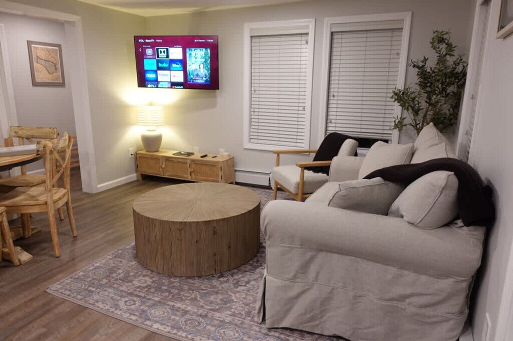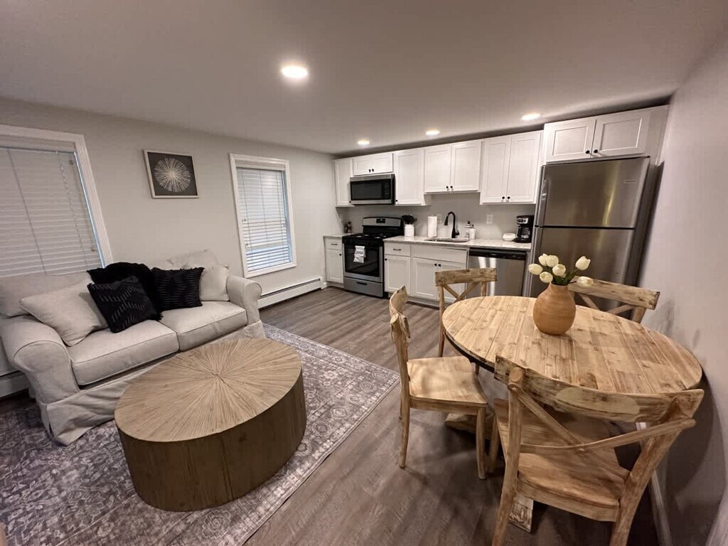 Discover The Crab Shack, a delightful 2-bedroom, 1-bathroom suite in the heart of Seabrook's Beach District. Unwind on your private porch, soaking in the ocean breeze or vibrant sunsets over the coast. Perfect for families, this inviting retreat is just a short walk across the bridge to downtown Hampton Beach, brimming with top-notch restaurants, lively entertainment, and the iconic boardwalk. With pristine beaches all around, your seaside adventure awaits! The Crab Shack is a 2-bedroom suite. There is a queen-size bed in one bedroom and bunk beds in the other. There is a full kitchen and bathroom. You have a private porch to enjoy as well! The Crab Shack has 2 parking spots located on the bay side of the property on Eisenhower Street, directly in front of your suite. Please park close together to ensure enough room for 4 vehicles to park in this lot. The Crab Shack is located in Seabrook Village - Beach District. Surrounded by ocean, you can choose which beach to visit. Located in a quiet neighborhood, it's great for bike riding and walks. There are five other units in this building, so please enjoy your quiet time after 9pm. Guests should not leave the apartment in a state that requires excessive or deep cleaning, such as dirty dishes or soiled floors. Cleaning fees cover the cost of standard cleaning between reservations. Trash pickup is Monday and Thursday, and guests should ensure their trash is in designated bins and moved near the road. Guests are expected to inform the host of any damage beyond normal wear and tear and work with the host for a reasonable solution. Disruptive gatherings are prohibited and no parties are allowed. Please lock the doors when not home and upon departure.