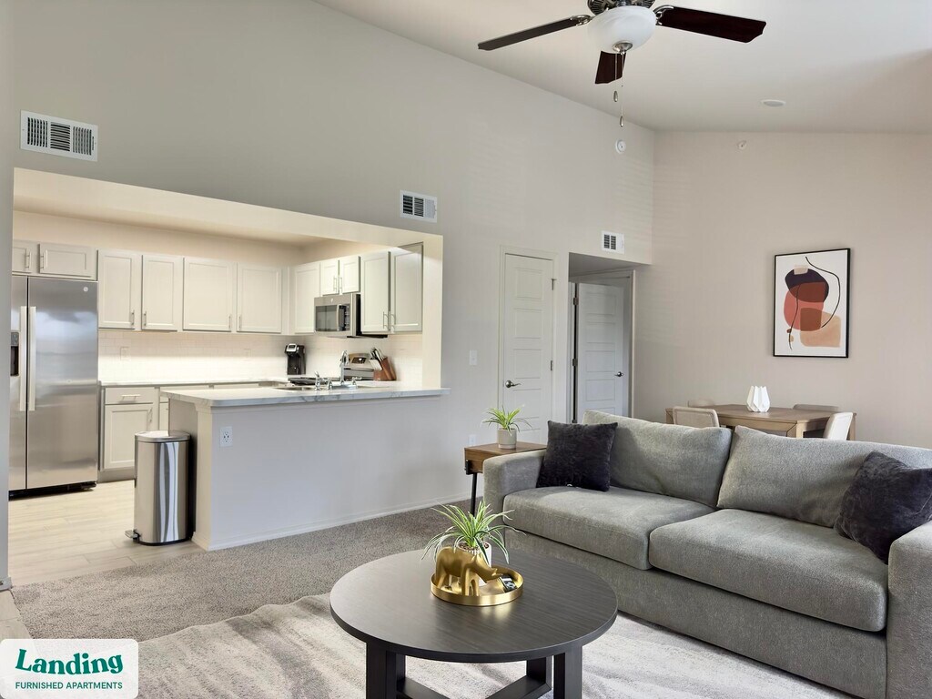 Landing offers flexible lease terms from weeks to months. Please always visit our website or contact us for the latest pricing & availability. Stay longer, save more: 6-Month Minimum base rent: starts at $1874/mo 12-Month Minimum base rent: starts at $1443/mo Landing offers flexible leases across a network of over 35,000 fully-furnished apartments throughout 375+ cities so you can rent on your terms, practically anywhere, and avoid the hassle of paying deposits or application fees. Visit to learn about all the benefits of a Landing membership, see our competitive up-to-date pricing, explore available apartments, take virtual tours, and make reservations online without jumping through traditional rental hoops. Landing's apartments at Center 301 are designed for comfortable, easy living, with the ability to stay as long as you like. Experience living with Landing Every apartment is outfitted with all the modern essentials including: custom-designed furnishings, a fully-equipped kitchen with deluxe stainless steel appliances, a gourmet coffee maker, premium linens, Smart TVs, and incredibly fast, reliable internet for working from home. When you live with Landing, you'll enjoy a hassle-free experience with the added benefit of 24/7 access to our dedicated member experience team. Some of the nitty-gritty: a background check and proof of income are required; we're completely smoke-free; bundled utility packages and pricing vary based on length of stay; pet-friendly options available; listed price reflects a 12-month minimum stay.