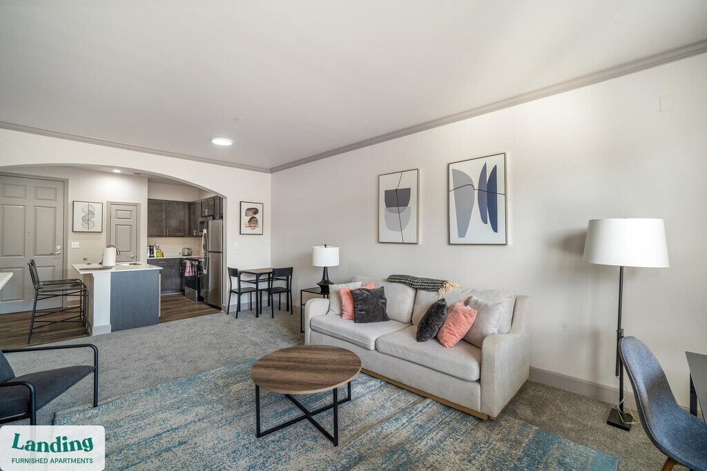 Landing offers flexible lease terms from weeks to months. Please always visit our website or contact us for the latest pricing & availability. Stay longer, save more: 6-Month Minimum base rent: starts at $2600/mo 12-Month Minimum base rent: starts at $2280/mo Landing offers flexible leases across a network of over 35,000 fully-furnished apartments throughout 375+ cities so you can rent on your terms, practically anywhere, and avoid the hassle of paying deposits or application fees. Visit to learn about all the benefits of a Landing membership, see our competitive up-to-date pricing, explore available apartments, take virtual tours, and make reservations online without jumping through traditional rental hoops. Landing's apartments at The Village at Stetson Square are designed for comfortable, easy living, with the ability to stay as long as you like. Experience living with Landing Every apartment is outfitted with all the modern essentials including: custom-designed furnishings, a fully-equipped kitchen with deluxe stainless steel appliances, a gourmet coffee maker, premium linens, Smart TVs, and incredibly fast, reliable internet for working from home. When you live with Landing, you'll enjoy a hassle-free experience with the added benefit of 24/7 access to our dedicated member experience team. Some of the nitty-gritty: a background check and proof of income are required; we're completely smoke-free; bundled utility packages and pricing vary based on length of stay; pet-friendly options available; listed price reflects a 12-month minimum stay.