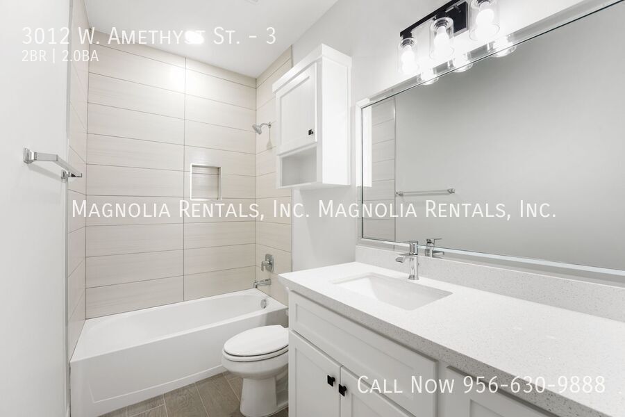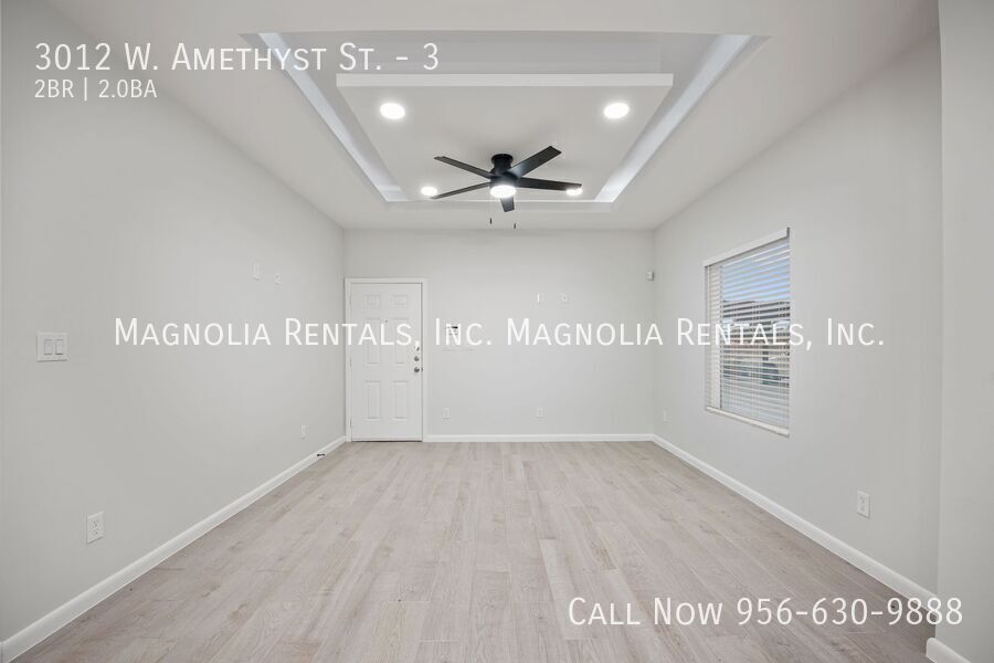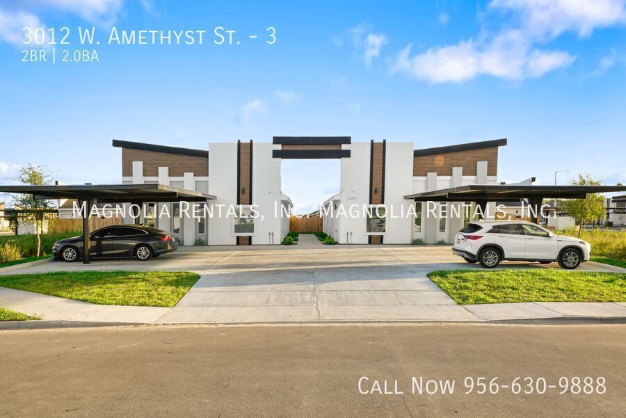 1st Month Free with 13 Month Lease 3012 Amethyst in Edinburg, TX is a 2-bedroom, 2-bath apartment featuring an open floor plan with vaulted/high ceilings and modern fixtures. The kitchen includes stainless steel appliances, granite countertops, a refrigerator, microwave, and stove/oven. The primary suite offers a master bath and a walk-in closet. Additional conveniences include in-unit washer and dryer, ceiling fans, covered parking, and water, trash, and lawn care included. Tenants pay all electric; building policies include no smoking and a 12-month lease. 24/7 maintenance support is available. 12 Month Lease 24/7 Maintenance Support Granite Countertop Modern Fixtures Vaulted Ceilings Water And Trash Included