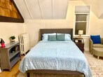 Property Id: 2121459 This unit is one of two on the top floor of a suburban home. It's located on a tree-lined street in a walkable neighborhood, and just blocks from numerous parks, coffee shops, and restaurants. Only one block from 11&15, routes I-83, 581, or 81, are just a stone's throw away. There is ample street parking just outside the house. Unit is completely furnished, and landlord pays utilities! Everything has been taken care of; you'll find starter toiletries and paper products, bath towels and washcloths, starter laundry and dish detergent, a white noise machine, Roku TV, nightstand with outlets and USB ports, hair dryer, laundry basket, vacuum, mobile island/table, ironing board and iron, Keurig, kitchenette with stove, oven, microwave, fridge, and freezer, kitchen stocked with silverware, dishes, coffee mugs, and cooking supplies. There is also an all-in-one washer/dryer unit you'll share with tenant of one other unit!
