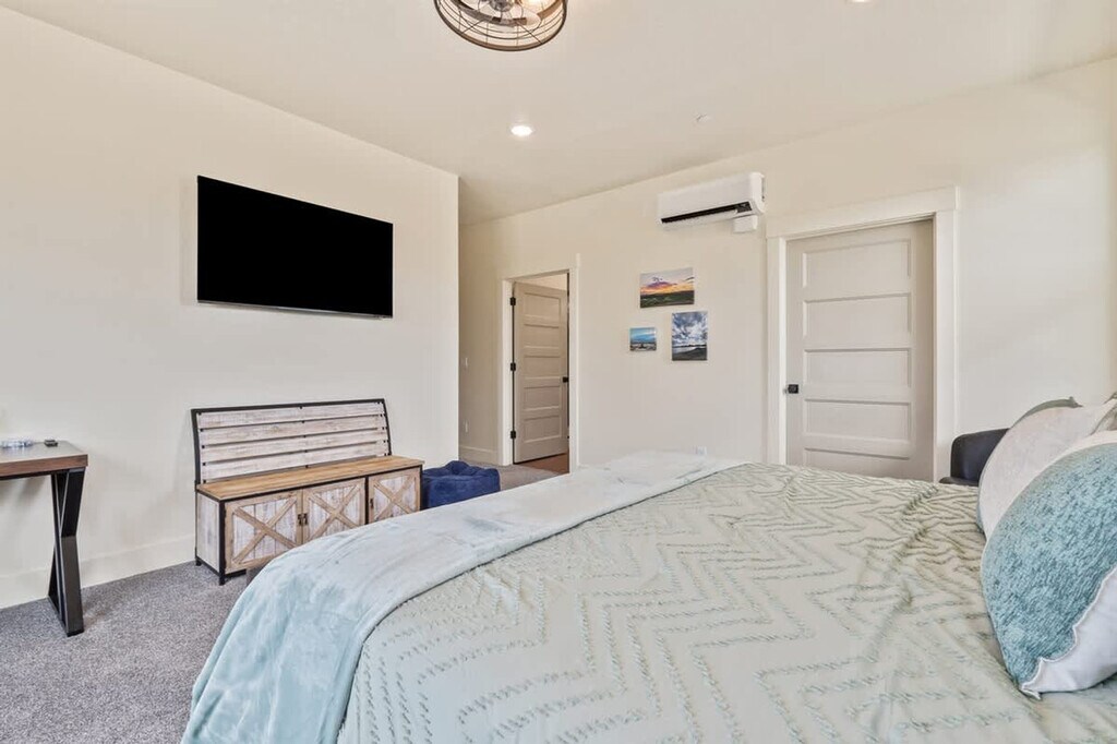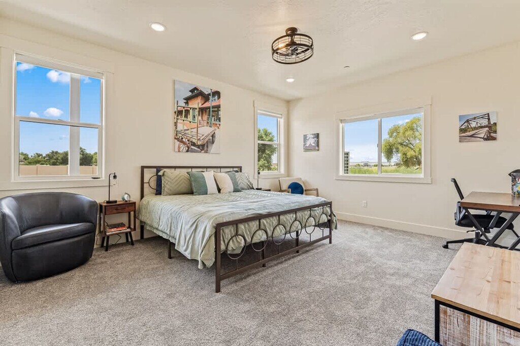 The advertised rate of $6,564/month is the lowest available price, based on a 30 day(s) stay with a move-in date of March 15, 2026. Rates vary depending on the duration of stay, season, and other parameters. For exact pricing and additional pricing components, please visit our website and enter your desired move-in and move-out dates. The rate is applicable when billed upfront; it can be higher if billed in multiple payments. Escape to the Barndominium Getaway and feel at home celebrating special occasions in a charming farmhouse-inspired setting. This stunning property offers a unique and spacious retreat. This home comfortably sleeps 9 guests inside and up to 5 more in the garage bonus room, providing plenty of space. The bonus room is a massive entertainment space for all ages, featuring games and additional sleeping options with rollaway floor mattresses, accessed through the garage for privacy and convenience. The fully equipped kitchen features a gas stove, fridge, and ample counter space. A washer and dryer are available for your convenience during longer stays. RV hookups are available for extended family or friends traveling in an RV for an additional charge. With farmhouse vibes throughout and charming decor, this home feels like a peaceful retreat. Enjoy the giant patios surrounding the home, ideal for barbecues, lounging, or gathering with loved ones under the stars. Play, relax, or watch your crew compete in the oversized RV bay with a pickleball court. Smoking inside the home will result in a $250 cleaning fee. Well-behaved pets are allowed with prior approval and a fee of $50 per pet per stay. Quiet hours are from 10:00 PM to 8:00 AM. Late check-outs beyond 30 minutes without prior approval will incur a $300 fee. [SI]