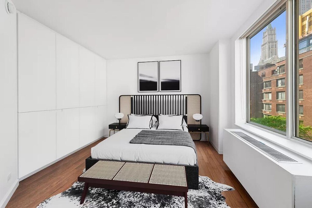 This beautifully renovated FLEX 3 bed 2 bath is one not to be missed. Nestled in one of New York cities trendiest neighborhoods its wont disappoint. Recently renovated 2 full bathrooms with deep soaking tub in one and frameless shower in the other. The kitchen features beautiful Caesar stone counter tops, white cabinetry, and marble back splash and all new stainless steel appliances. The living room is flooded with natural light thanks to a gorgeous curved wall of floor to ceiling windows. With south western exposure. Enjoy open views from Washington Market Park to the Hudson River and other iconic landmark architecture in the area. If that sunshine is too much there are Solar blinds are in place with additional black out shades in the bedroom. The views from all bedrooms are iconic new York city views. But while enjoying the views you wont have to enjoy the city noise thanks to city sound reduction windows Tribeca is a full service and modern condominium building in one of New York Citys most sought after residential neighborhoods. This prime location is close to Whole foods, Bed, Bath, and Beyond, Barnes and Nobel, Washington Market Park, the Farmers Market, Equinox, Target, and countless other great shops and markets. Transportation is very convenient with the 1,2,3,4,5,6,A,B,C,R, and W trains. Washer and dryers are allowed in the apartments. There is a 24 hour doorman, a resident manager, a serene garden courtyard off the lobby, a package room, central laundry facilities, bike room, storage room, roof deck with tables and chairs for dining and amazing views. The Tribeca is pet friendly. Please note: some pictures have been virtually staged