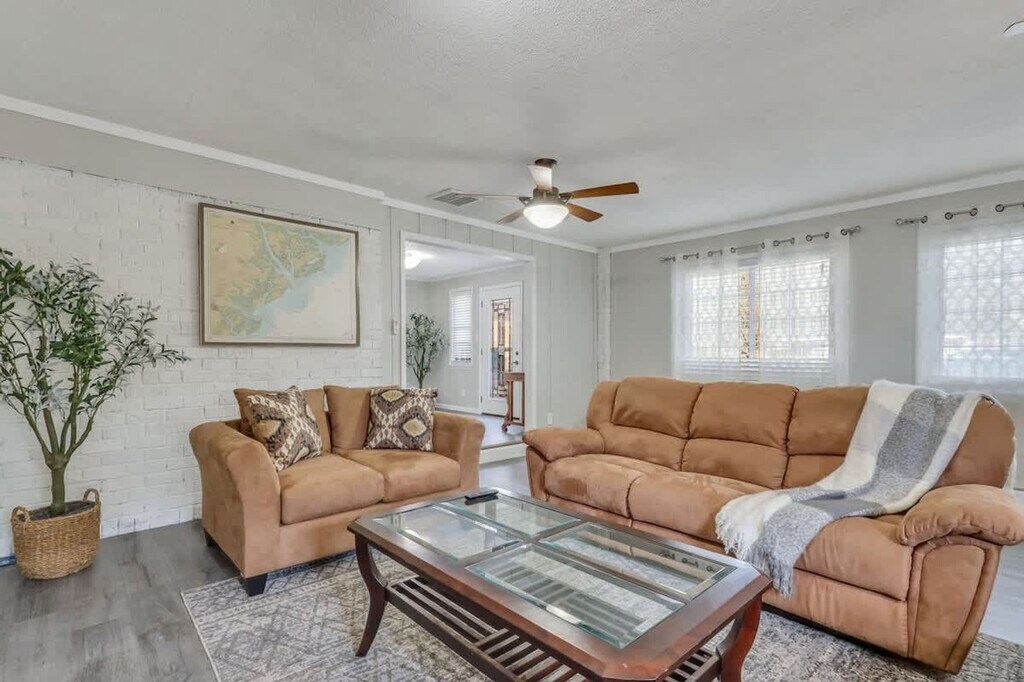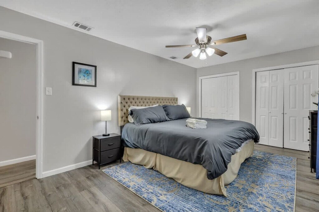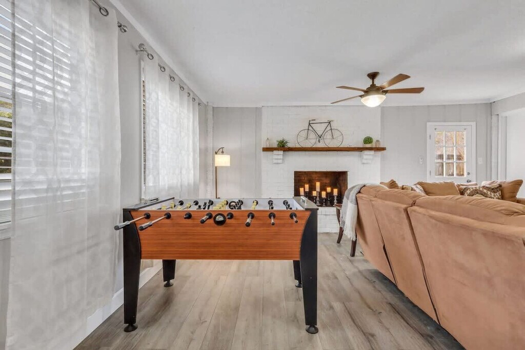 Feel at home in this spacious 2000 square-foot fully furnished apartment, conveniently located just 20 minutes from downtown Savannah and 5 minutes from Tanger Outlets. Relax in the private fenced backyard or enjoy a game of foosball after exploring the area. This home offers a comfortable stay with amenities including Wi-Fi, a smart TV, all utilities, a fully stocked kitchen, a designated workspace, a coffee and tea station, an outdoor seating area, a charcoal grill, and a washer and dryer. Cable TV is available upon request for an additional cost. If you require specific amenities such as a pack and play or high chair, arrangements can be made upon inquiry. Early check-in is available for a fee of $40 between 12:00 PM and 3:00 PM, subject to availability. A pet fee of $90 will be charged if you bring pets, covering extra cleaning. Parking is available for up to 4 cars. Nestled in a quiet family neighborhood, this apartment is conveniently located near I-16 and I-95, providing easy access to Pooler shopping and restaurants, as well as Savannah and surrounding areas. Key destinations include Downtown Savannah (13.5 miles), Tybee Island (32 miles), Savannah Airport (5.9 miles), and Tanger Outlets (3.2 miles). Nearby grocery stores include Publix (3 miles), Walmart (3.6 miles), Costco (4.3 miles), and Sam's Club (3.5 miles). Respect the quiet family neighborhood by refraining from outdoor noise between 9:00 PM and 8:00 AM. A $200 fee will be charged if evidence of smoking or vaping is found. Early check-ins or late departures without prior approval will incur an extra charge of $100. The property requires identity verification for all guests aged 18 years or older. There is one security camera and one video doorbell at the front of the house for security purposes. Please leave common areas clean and do not move any furniture or decorations. Only one set of towels per person is provided, and a starter pack of essentials is included. Additional guests beyond the agreed number are not allowed, and no parties or events are permitted.