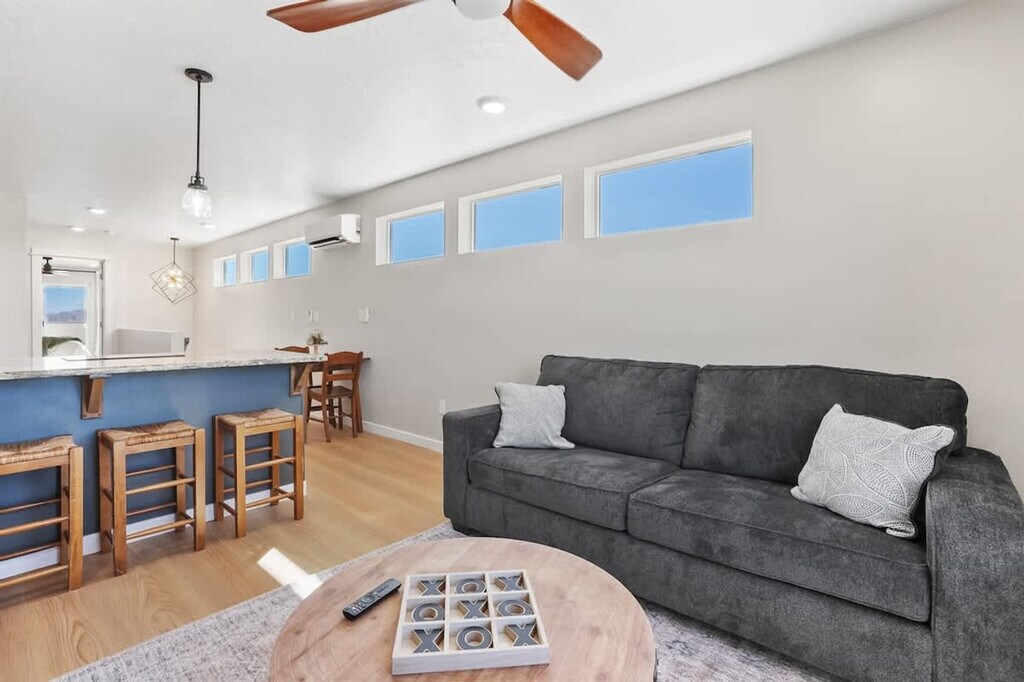 Feel at home in this spacious 6-bedroom, 4-bathroom haven in Caldwell, Idaho, perfect for group getaways or family reunions. This inviting retreat accommodates up to 18 guests and is situated near the freeway and Hwy 20/26, with shopping just 10 minutes away. This home boasts entertainment with a foosball table, home gym, and a trampoline. Each bedroom has a Smart TV. The first bedroom has a queen Temperpedic mattress with an adjustable base, side built-in cabinets, a smart 50" TV, and a closet. The full bathroom has shampoo, conditioner, body wash, and towels. The second bedroom is the "bunk room" with a triple bunk bed (twin over twins), kid toys, a smart TV, and a swing. The third bedroom has a king bed and a bunk bed (in the closet). The Jr Suite has 2 queen daybeds, a full Murphy bed, an 86" Smart TV, a closet, and a full bathroom with raised vanities. The primary ensuite has a king bed with an adjustable base, a large bathroom with a private water closet, a separate shower, a 6ft tub, and dual vanities. The open-concept living room, kitchen, and dining space features vaulted ceilings. The fully fenced backyard includes a covered back patio with ample seating and a BBQ grill. Three air mattresses are available for use. A 3-car driveway is available for parking. Street parking is also available, but please leave 3+ feet from driveways. Located in Canyon County, Caldwell, Idaho, right off the main freeway and Hwy 20/26, this home is a great jumping point to either the Boise Metropolitan area or Owyhee, Gem, and Washington counties. From I-84W, take Exit 29, continue on US-20E/US-26E, take a left at Aviation Way, right on Nantucket, left on Cliff Swallow, and the home will be on your right. The minimum age to rent is 21. Vaping and smoking are prohibited in the home. Loud parties are prohibited. Please respect quiet hours from 10 pm to 7 am. Please be respectful of furniture; no animals on furniture. Do not leave animals alone without being crated if it is a pet-friendly home. No cats are allowed unless pre-approved. If the hot tub is used, please refill it above the highest jet. If the hot tub is found to be excessively dirty or misused, a $150 fee will be charged to cover the cost of draining, cleaning, refilling, and re-treating the water. [SI]