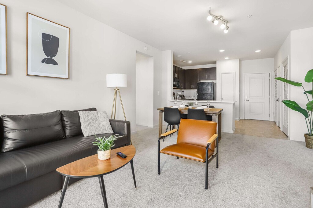 Welcome to your stylish 2-bedroom loft in the heart of National Landing! Feel at home in this apartment, your perfect home base for exploring Arlington and Washington, D.C., with incredible ease. Step into this bright and modern 2-bedroom, 2-bathroom loft, thoughtfully designed to be your comfortable and stylish home away from home. The master bedroom features two comfortable queen-size beds. The second bedroom is a cozy and private space with another comfortable queen-size bed. The welcoming living area has a cozy sofa bed, ideal for unwinding after a day of exploring. The kitchen is fully equipped with modern appliances and all the essentials you need to prepare meals. Includes a washer and dryer for a hassle-free stay. Parking is available. Please display your parking permit at all times to avoid being towed. This apartment is in the heart of National Landing (Crystal City), a vibrant and well-connected neighborhood perfect for both business and leisure travel to the D.C. area. Experience an unbeatable walkable lifestyle with a short stroll to the Crystal City Metro, connecting you to D.C.'s National Mall in minutes, and steps from premier shopping at Fashion Centre at Pentagon City. You're surrounded by top-rated local dining, from vibrant tacos at Tacombi to the popular all-day cafe, The Freshman. You are just a few Metro stops from the National Mall, home to the world-class Smithsonian Museums like the International Spy Museum, and a short distance from the profound Arlington National Cemetery. Getting around from this centrally located apartment is incredibly easy. You are just a short walk from the Crystal City Metro Station, putting all of D.C.'s landmarks at your fingertips. The Reagan National Airport (DCA) is just one Metro stop away—or even walkable—making for a stress-free commute. You are right next to the iconic 18-mile Mount Vernon Trail, perfect for a scenic bike ride or run. You can even watch the planes land at Gravelly Point Park. For your convenience, a large and modern Whole Foods Market is located just a short walk away. The building requires a brief guest screening prior to check-in, which must be completed before arrival. To respect our neighbors, loud music and parties are strictly prohibited and smoking inside is charged a $300 fine. A party on the property is charged a $300 fine. Quiet hours are between 10:00 PM and 8:00 AM. Washcloths are not provided. [SI]