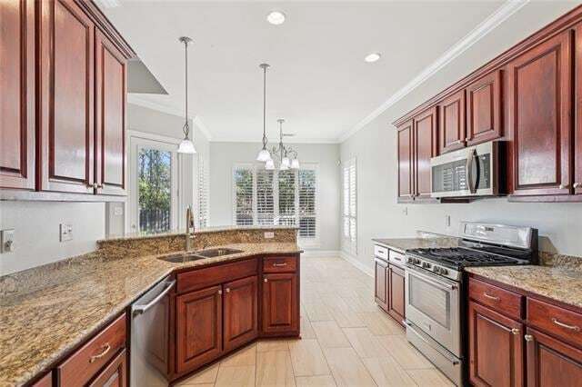 Recently updated Guste Island RENTAL HOME. This 3bd/2bth Madisonville dream features brand new flooring in all bedrooms and bathrooms! Grand foyer entrance with stunning double wooden doors, opens to spacious living room with soaring 12ft ceilings, gas fireplace with custom built-ins, and wall of windows complete with plantation shutters. Gorgeous kitchen features solid wood cabinets, granite counters with breakfast bar, stainless appliances including gas range/oven and refrigerator. Generous dining nook overlooking rear yard. Primary suite offers trey ceilings and ensuite with dual, split vanities, oversized soaking corner tub, walk-in shower, new tile floors, and two custom built-out closets. Large guest bedrooms and spacious guest bathroom with new tile flooring and oversized vanity. HUGE laundry room with wash basin and storage area. Oversized concrete patio, perfect for entertaining! Fully fenced rear yard that backs to greenspace. Guste Island features a community clubhouse, swimming pool and hot tub, as well as baseball/soccer field and walking paths. Award winning Madisonville/Mandeville school districts. Small pets considered at owner's discretion. Lease Purchase available. A MUST SEE! MAKE IT YOURS TODAY!