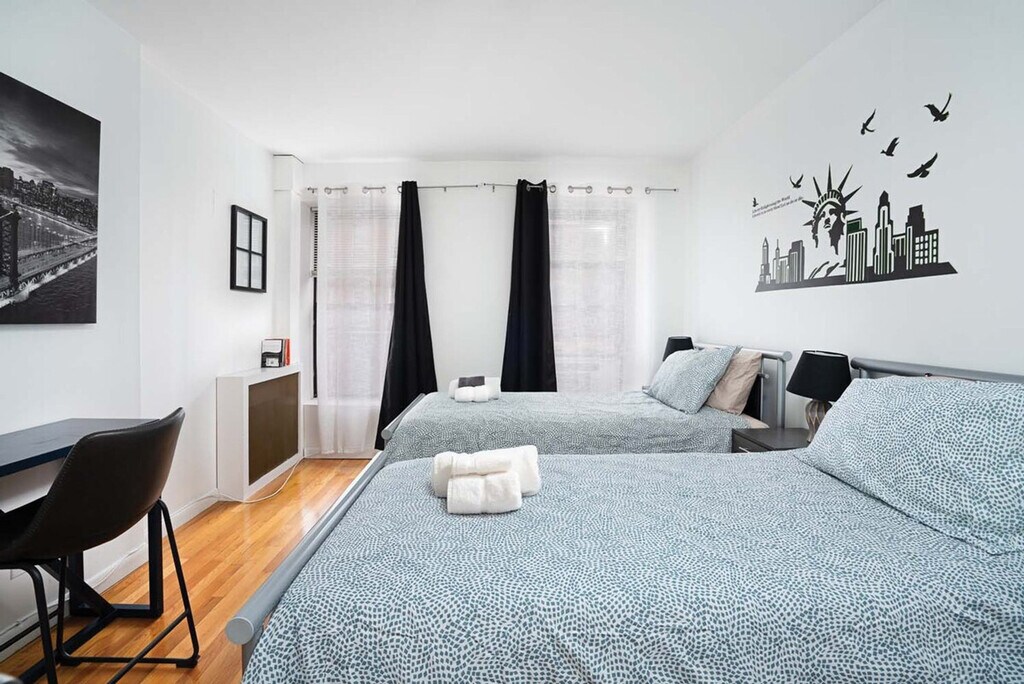 Welcome to your home away from home in the heart of East Harlem! This stylish and comfortable 2-bedroom apartment is perfect for families, friends, or business travelers looking for an authentic NYC experience. Located on the third floor of a walk-up building, you'll find a cozy living space with a pull-out sofa, an elegant dining area, and two well-appointed bedrooms. The apartment features a comfortable living room with a pull-out sofa, perfect for extra guests. Enjoy cozy evenings and quality time together in this warm and welcoming space. The elegant dining area is ideal for family meals or game nights. The fully equipped kitchen includes a large refrigerator, stove top and oven, coffee maker, toaster, microwave, dishwasher, and all necessary utensils and cutlery. The well-stocked bathroom provides fresh bed linens, towels, an iron, and a hairdryer for your convenience. Street parking is available for free, but be sure to check alternate side parking signs. Nearby laundry services include A B Elite Cleaners and Merlin Laundromat, both located on 2nd Ave. Explore NYC like a local with this prime location just 5 blocks from Central Park, perfect for scenic walks, jogging, and picnics. The apartment is a quick ride to NYC’s most iconic museums, including The Met and Museum Mile. Convenient subway access with the 6 Train at 103rd St just minutes away makes city exploration easy. Discover East Harlem’s diverse restaurants, coffee shops, and local boutiques. Smoking inside or outside of the apartment will result in a fine of $500. Pets are not allowed, and a fine of $500 will be charged if this rule is violated. The apartment is not child-proof or child-protected. Quiet hours are from 10 pm to 7 am. Check-out time is 11:00 AM, and all dishes should be placed in the kitchen sink, and all trash in the trashcans. Guests cannot receive mail at this address, please consider opening a PO Box. Self check-in is available with easy key access for a seamless arrival. Kindly note that a $350 refundable security deposit is required and will be collected directly by the partner after your booking is confirmed. The security deposit will be handled through direct communication with the partner and is not processed automatically. [SI]