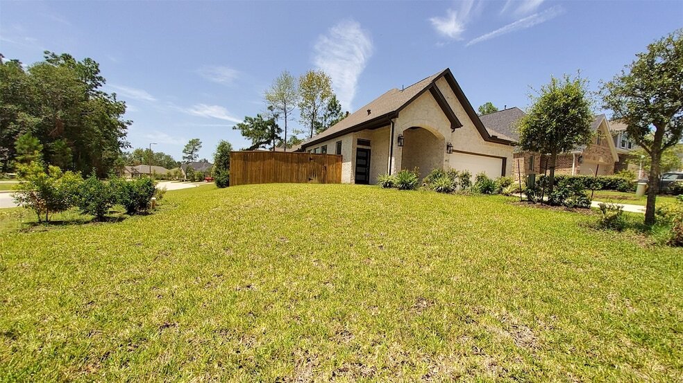UPSCALE master planned community with AMENITIES, AMENITIES, AMENITES- WOODFOREST!! Enjoy - Woodforest Golf Club - a 27 championship golf course, walking trails, tennis/basketball, Rec center, & parks/playgrounds. Only minutes from The Woodlands, Lake Conroe, w/ lots of nearby shopping & dining. Come see this new, exciting 1 story, 3 Bedroom, 2 Baths, 2 car garage home in wooded area of Woodforest. Large family room, open to the kitchen with/quartz island counter tops, stainless steel appliance package, pendant lighting and under cabinet lighting in kitchen. Main bedroom suite w/ large walk-in closet, spacious secondary bedrooms. Full Gutters and Security System included. Large corner lot across from Park.