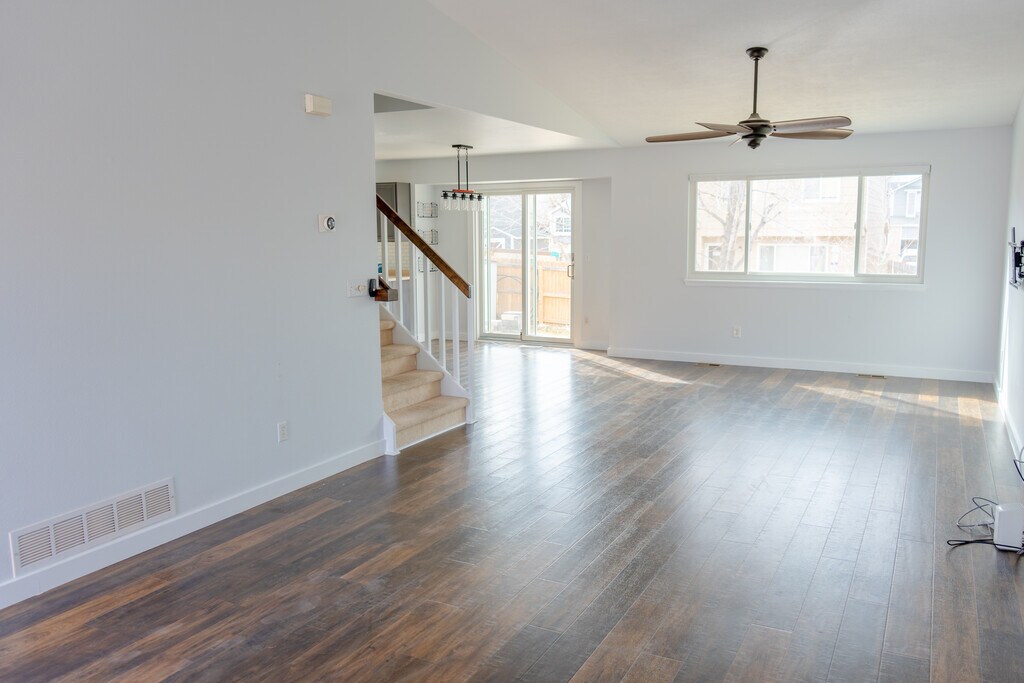 Property Id: 2349294 Welcome to your new home! This charming single-family residence perfectly blends comfort and modern efficiency. This home fratures 3 bedrooms, 2 full bathrooms, and 2 half bathrooms, plus brand new carpets! The main level features a bright open-concept living space, while the kitchen and laundry come fully equipped with a dishwasher and washer/dryer. Step outside to the backyard patio and fully fenced yard, perfect for summer hosting. The recently refinished basement is a true standout, featuring custom bookshelves, a sleek electric fireplace, and a unique two-story indoor playhouse with a detachable slide. Enjoy significant savings with solar panels, new windows, and cellular shades that increase energy efficiency. New AC unit will be installed before June. Security cameras included. This pet-friendly home (additional pet deposit and rent applied) is located near parks and a community pool. Contact us today to schedule your private tour!
