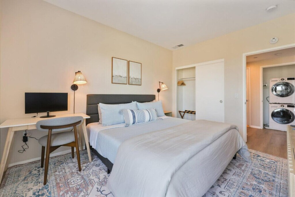 The advertised rate of $9,548/month is the lowest available price, based on a 1 month(s) stay with a move-in date of April 6, 2026. Rates vary depending on the duration of stay, season, and other parameters. For exact pricing and additional pricing components, please visit our website and enter your desired move-in and move-out dates. The rate is applicable when billed upfront; it can be higher if billed in multiple payments. Feel at home in this modern 2-bedroom, 2-bath apartment in vibrant North Park, just 10 minutes from downtown and 15 minutes from the airport or beach. This apartment is perfect for families and business travelers seeking a modern, cozy retreat. This beautifully designed apartment welcomes you with a spacious, open-concept layout. The gourmet kitchen flows into the dining and living areas, perfect for cooking, dining, and unwinding. Large windows and balcony doors flood the space with natural light, highlighting the stylish decor. The fully equipped kitchen comes with a microwave, stove and oven, toaster, blender, dual coffee maker (K-Cups and drip coffee), complimentary coffee, tea, creamers, double-door refrigerator/freezer, dishwasher, sink with hot and cold water, plates, glasses, silverware, pots and pans, and spices. The apartment also features central air conditioning and heat, and an in-apartment laundry corner with a washer, dryer, iron, and ironing board. One free secured parking space is available in the building garage. Early check-in and late check-out can be accommodated for a minimal fee, depending on availability. A crib is available. Located in North Park, you're just minutes from downtown, the airport, and the beach. North Park is a lively neighborhood known for its eclectic art, culture, and dining. University Avenue is lined with trendy cafes, craft breweries, and eateries serving a range of global cuisines, while the streets are filled with colorful murals and art galleries. The Observatory North Park, Old Town, Balboa Park, and the San Diego Zoo are all within a short drive. Pets are not allowed. Smoking is prohibited inside the apartment, and any evidence of smoking will result in a fee for odor removal and furniture cleaning. Parties and events are not permitted. Undeclared guests exceeding the maximum occupancy of six are strictly prohibited and will incur an additional charge of $50 per person, per night. Please advise the host of any changes in the number of guests after booking. Each guest needs to provide an ID prior to check-in. To maintain a safe environment, last-minute bookings and local guest reservations may require extra security verification. Bedrooms feature work desks with monitors and fast Wi-Fi. Dedicated workspaces are available. [SI]