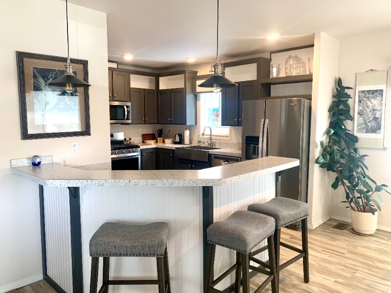 Property Id: 2163040 5 year-old 2+2 comfortable and tastefully furnished home. Open living, kitchen dining floor plan. Low utilities; well insulated. Master bath has large soaking tub. Large covered porch. On a quiet street. Off street parking. Renter responsible for snow removal.
