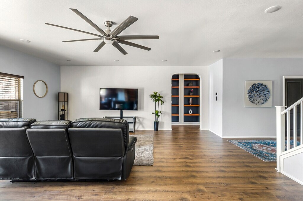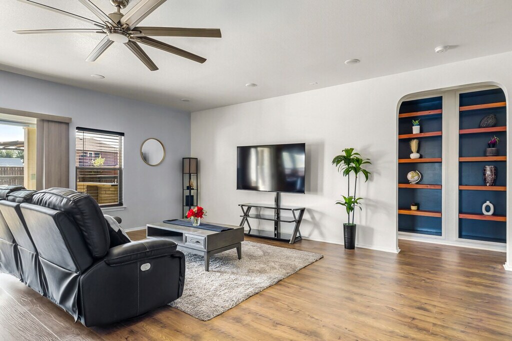 The advertised rate of $8,533/month is the lowest available price, based on a 30 day(s) stay with a move-in date of July 6, 2026. Rates vary depending on the duration of stay, season, and other parameters. For exact pricing and additional pricing components, please visit our website and enter your desired move-in and move-out dates. The rate is applicable when billed upfront; it can be higher if billed in multiple payments. Feel at home in this beautiful, pet-friendly Pflugerville home, a completely private oasis in the Austin area. This home features a fully fenced backyard, deck, 5-person hot tub, grill, and gazebo. Inside, you'll find a spacious living area on the first floor with a sofa sleeper, Roku TV, kitchenette, and dining table. The second floor of the suite features two king-size beds and a sofa sleeper with a Roku TV. Free parking is available on the street right in front of the house. Located in a quiet and safe residential neighborhood, this home is a few blocks from Pfluger Park, with its beautiful bike and walking trails, and Gilleland Creek pool. It's also just 15 minutes from Austin. [SI]