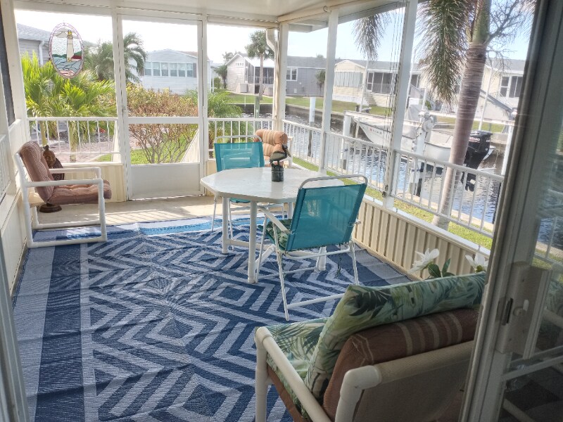 Property Id: 1747937 Location! Gated, Waterfront, Lanai, deck, fishing dock, Views from every room. View of marina, and yard has lots of palm trees and beautiful quiet and peaceful! So many things to do. Shuffleboard, Bocce, Horseshoes, Heated Pool, Pickleball, and many other things. Call