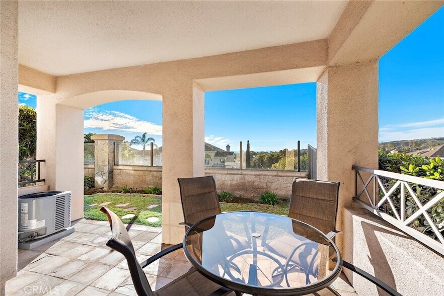 OFFERED FULLY FURNISHED and thoughtfully stocked, simply arrive and settle in. Positioned in one of the most desirable locations within the community, this PRIVATE SINGLE-LEVEL END-UNIT captures OCEAN, CATALINA ISLAND, AND SUNSET VIEWS. Natural light fills the open-concept living spaces, while the wraparound yard and covered BBQ patio creates a fantastic indoor-outdoor setting. Remodeled in 2018, the home features a custom kitchen and baths, stack stone fireplace, wood-style flooring, built-ins, and modern appliances. The spacious primary suite offers dual vanities, walk-in shower, and generous walk-in closet. The secondary bath also includes dual vanities, ideal for guests. There are no interior steps and no steps from the parking lot to the front door only two steps from the garage into inside laundry room just off the kitchen. Comfortable, private, and beautifully positioned an ideal coastal retreat with an easy, open feel.
