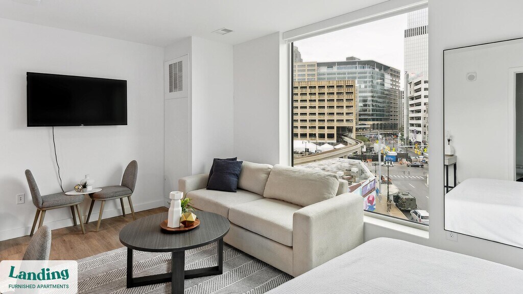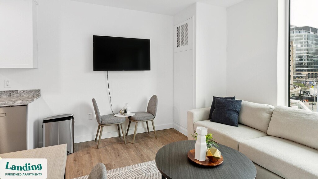 Landing offers flexible lease terms from weeks to months. Please always visit our website or contact us for the latest pricing & availability. Stay longer, save more: 6-Month Minimum base rent: starts at $2025/mo 12-Month Minimum base rent: starts at $1849/mo Landing offers flexible leases across a network of over 35,000 fully-furnished apartments throughout 375+ cities so you can rent on your terms, practically anywhere, and avoid the hassle of paying deposits or application fees. Visit to learn about all the benefits of a Landing membership, see our competitive up-to-date pricing, explore available apartments, take virtual tours, and make reservations online without jumping through traditional rental hoops. Landing's apartments at eXchange are designed for comfortable, easy living, with the ability to stay as long as you like. Experience living with Landing Every apartment is outfitted with all the modern essentials including: custom-designed furnishings, a fully-equipped kitchen with deluxe stainless steel appliances, a gourmet coffee maker, premium linens, Smart TVs, and incredibly fast, reliable internet for working from home. When you live with Landing, you'll enjoy a hassle-free experience with the added benefit of 24/7 access to our dedicated member experience team. Some of the nitty-gritty: a background check and proof of income are required; we're completely smoke-free; bundled utility packages and pricing vary based on length of stay; pet-friendly options available; listed price reflects a 12-month minimum stay.