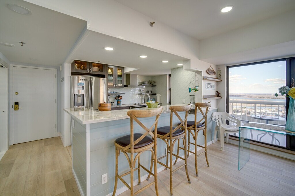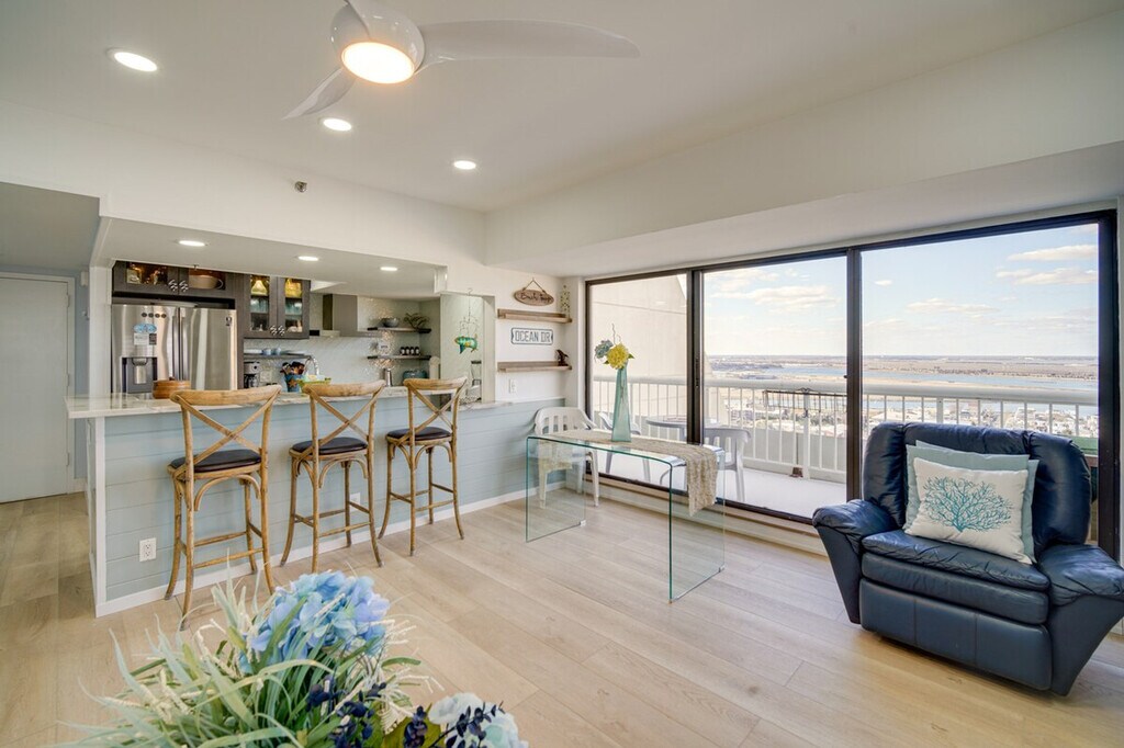 The advertised rate of $7,273/month is the lowest available price, based on a 1 month(s) and 2 day(s) stay with a move-in date of February 19, 2026. Rates vary depending on the duration of stay, season, and other parameters. For exact pricing and additional pricing components, please visit our website and enter your desired move-in and move-out dates. The rate is applicable when billed upfront; it can be higher if billed in multiple payments. Feel at home in this 1-bedroom, 2-bathroom condo on the Atlantic City Boardwalk in Atlantic City. Step-free access is available via elevator. This condo offers a balcony with outdoor furniture and a wine refrigerator. The kitchen features a breakfast bar, refrigerator, stovetop, oven, dishwasher, convection oven, toaster, and coffee maker. You'll also have access to free Wi-Fi and a smart TV. Complimentary toiletries, linens, towels, ceiling fans, central air conditioning, and central heating are provided. Community amenities include an indoor hot tub, a heated indoor pool (88 degrees), a fitness center, a sauna, and community garage parking for 1 vehicle. This centrally located condo is near attractions and beaches such as Ventnor City Beach and Margate Beach. No pets, events, parties, or large gatherings are allowed. Additional fees and taxes may apply. A photo ID may be required upon check-in. [SI]