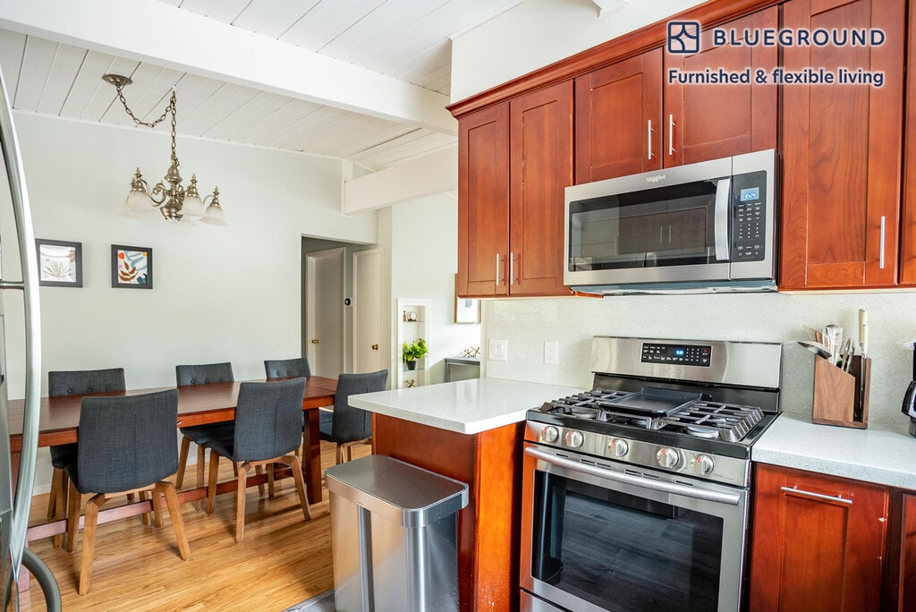 Discover the best of Menlo Park, with this four bedroom house in The Willows. It’ll be easy to simply show up and start living in this airy furnished house with its fully equipped kitchen, stylish living room, and our dedicated, on-the-ground support. (ID #SFO1543) The advertised rate of $7,190/month is the lowest available price, based on a 3 month(s) and 6 day(s) stay with a move-in date of December 14, 2025. If you’re looking for a 1-year stay, the rate is $7,650/month. Rates vary depending on the duration of stay, season, and other parameters. For exact pricing and additional pricing components, please visit our website and enter your desired move-in and move-out dates. The rate is applicable when billed upfront; it can be higher if billed in multiple payments. Brokers are welcome to reach out. Were you looking for an unfurnished lease? Try Blueground instead and upgrade from unfurnished to furnished living: - Furnished at rates comparable to unfurnished - No setup or furniture costs - save thousands - Move-in ready - save time, just bring your suitcase Designed with you in mind As with any Blueground house, you’ll find a thoughtfully designed space complete with beautiful furniture and a fully equipped kitchen in this four bedroom property. And, thanks to our superior quality mattresses, luxury linens, and towels, you can relax knowing you’ll always feel comfortably at home. When you’re ready for some fun, you can take in the Menlo Park vibes or bring the entertainment to you with the premium wireless speaker or smart TV. This house also offers in-house laundry. Sleeping arrangements King Bed, 70.8in/180cm Queen Bed, 63in/160cm Queen Bed, 63in/160cm Queen Bed, 63in/160cm Amenities Building amenities unique to this four bedroom house include an on-site: - Dryer - Washing machine - Parking - Pets allowed Arrival and ongoing support The entire house is yours to enjoy! Throughout your stay, you’ll have access to our Client Experience team through the Blueground App. You can schedule additional cleanings, submit maintenance requests, and view our neighborhood recommendations with just a few taps. We’ll share all details upon confirmation of your stay. Other things to note This Blueground house has flexible lease options, allowing you to book it for one month, a year, or more. Pets are welcome, though weight limits and breed restrictions apply and may incur fees. Parking is offered based on availability and is subject to a fee. Please keep in mind that this is a walk up building. We take great pride in ensuring every photo displayed is shot in our own units with our actual furnishings. That said, we regularly refresh our decor and furniture arrangement, which may differ from what’s pictured. [SI]