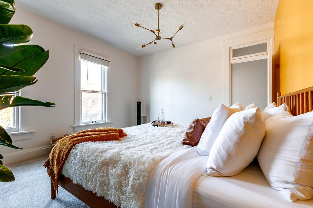Feel at home in this luxurious 4-bedroom townhome in Columbus, Ohio, featuring original hardwood floors throughout its three stories. The property boasts two king-size beds and three queen-size beds, along with an air mattress and a pack/play crib, ensuring ample sleeping arrangements for all guests. Enjoy the convenience of a fully equipped kitchen with quartz countertops and high-end appliances, as well as a cozy living room with a 55-inch Smart TV. The townhome is pet-friendly and offers free street permit parking for one vehicle, with additional parking available for a fee. This beautifully designed townhome is filled with rare plants and upscale decor, creating a unique and inviting atmosphere. The fully equipped kitchen includes high-end appliances and your new favorite coffee, while the living room features a 55-inch Smart TV and additional Smart TVs in all bedrooms. For light sleepers, tower fans and white noise machines are provided in every room. The property also offers a dedicated workspace, making it ideal for remote work. Guests can enjoy early check-in and late check-out options for an additional fee. A romance package is available for $100, including rose petals on the master bed, a banner, chocolate cake, and a complimentary bottle of champagne. A birthday package is also offered for $100, featuring a banner, chocolate cake with gold candles, and a complimentary bottle of champagne. Pet stays are welcome for $40 per pet per night, with a maximum cap of $600 per pet for the entire stay. Additional street permit parking is available for $10 per vehicle for the entire stay. Located in the heart of Columbus, this townhome is just a short walk from the vibrant Short North Arts District, where you'll find a variety of unique restaurants and bars. Popular landmarks such as the Ohio State University campus, Greater Columbus Convention Center, and Nationwide Arena Stadium are all within a short drive. With easy access to major highways and public transportation, exploring the city is a breeze. The townhome is centrally located downtown and shares a wall with a neighboring unit, so some city or neighbor noise is possible. Quiet hours are from 9 p.m. to 7 a.m., and noise-detecting technology may be used to monitor excessive noise levels. No parties, gatherings, or events are allowed, and a $500 fee will be charged for violations. Smoking is not allowed inside the home, and a $500 additional cleaning fee will be charged for violations. Pets are allowed with prior approval, and a $500 fee will be charged for undisclosed pets. Guests are responsible for any damages, and unreported damage will be deducted from the security deposit. Includes a dedicated workspace with high-speed internet, making it perfect for remote work. A laptop computer is not included. Registration Number: 20232028