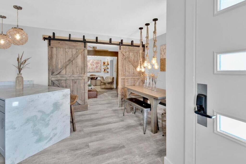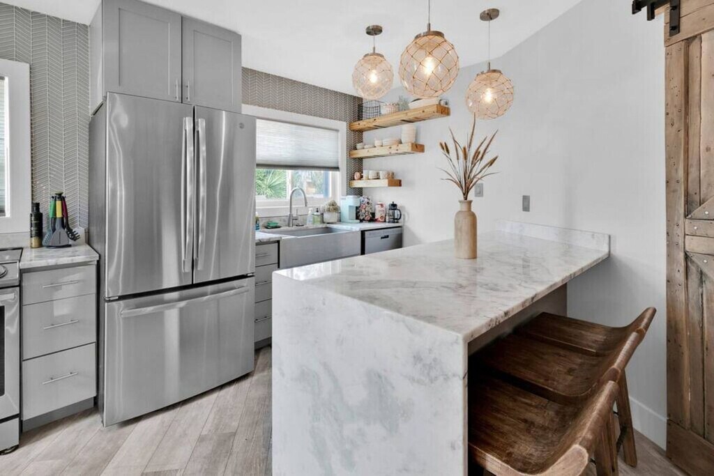 The advertised rate of $6,981/month is the lowest available price, based on a 30 day(s) stay with a move-in date of May 9, 2026. Rates vary depending on the duration of stay, season, and other parameters. For exact pricing and additional pricing components, please visit our website and enter your desired move-in and move-out dates. The rate is applicable when billed upfront; it can be higher if billed in multiple payments. Welcome to this charming and cozy 2-bedroom, 1-bathroom beach house on Okaloosa Island! Just a short 2-3 minute walk to the beautiful white sand beach, this unit is located in a quiet residential area on the island. Feel at home in this coastal retreat with farmhouse-style elegance. The spacious kitchen is fully equipped with a large French door fridge with an ice maker and freezer, a marble breakfast bar, and a variety of cookware and spices. The living room offers comfortable seating, a 65" smart TV, and Netflix and Spectrum cable. One bedroom features a king-size Tempur-Pedic mattress, a walk-in closet, and a smart TV, while the other has a queen-size Bed-Tech memory foam mattress, closet, and smart TV. The bathroom has a shower, and there's a Samsung washer and dryer set available for your use. This home also features a premium RainSoft whole-house water filtration system. The property has an EV charger available in a designated parking space, but usage requires payment. Parking is first-come, first-served, so availability is not guaranteed. Located in a quiet neighborhood between the intercoastal Santa Rosa Sound and the Gulf of Mexico, this apartment is attached to the Okaloosa Island Beach Access #1 Boardwalk that goes directly to the Gulf of Mexico's sugar-white warm sandy beach and the intercostal waterway near the Brooks Bridge. The Santa Rosa Sound is a minute or two on the opposite side, also connected to the boardwalk. Okaloosa Island is known for less crowded beaches and is about 10-15 min from Destin depending on traffic. This neighborhood is located near restaurants and bars. Guests can get around Okaloosa Island by car, bike, or on foot. There are also several local shuttle services available for transportation to nearby attractions and restaurants. Additionally, the Okaloosa Island Fishing Pier is within walking distance. Due to being on an island with a tropical climate, there are tropical insects, amphibians, and fish. The space is treated regularly for pests; however, you may come across a palmetto bug, wood roach, American roach, Ceratopogonidae (no-seams), mosquitos, or termites. During storms, insects can and will invade spaces to get away from the rain. The property is located very close to the water and snakes such as water moccasins are seen on occasion, especially near rocks. Swimming in the bay has a variety of aquatic species that can cause harm, swim at your own risk. If any sign or smell of smoke is encountered, a $500 smoke damage cleaning fee will be charged. Includes a spacious aviator desk and chair. The backyard leads to the boardwalk. The secondary unit in back is not accessible during your stay. It is a separate rental unit. This property is equipped with a Minut Smart Home Sensor that monitors noise levels, temperature, humidity, and motion near the entry. [SI]