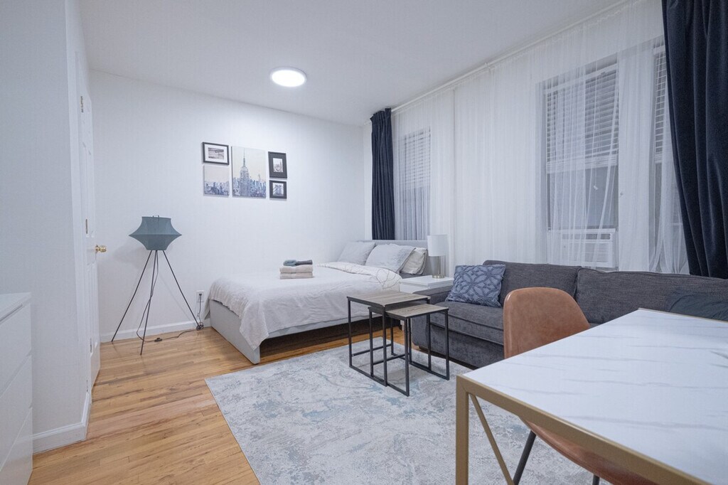 Feel at home in this charming, stylish, newly renovated, and fully furnished studio apartment located on the second floor of a charming walk-up building in the heart of New York City. This gem offers the perfect blend of comfort, style, and convenience, making it an ideal choice for both work and leisure stays. The apartment features a fully equipped kitchen with a large refrigerator, stovetop, oven, coffee maker, toaster, microwave, dishwasher, and all necessary utensils and cutlery. Relax in the cozy living room with a queen-size bed, a comfortable couch, a coffee table, and a sleek bar table perfect for meals or work. Fresh linens, towels, an iron, and a hair dryer are provided for your comfort. The elegant marble bathroom offers both a shower and a bathtub for a relaxing experience. Laundry is made easy with convenient wash-and-fold service and dry cleaning just around the corner. All utilities, including high-speed Wi-Fi, heat, hot water, and gas/electricity, are included. Situated in the Upper East Side, this apartment is surrounded by the trappings of wealth, posh buildings, and Madison Avenue's flagship boutiques. It's a key destination for visitors with fantastic museums nearby, such as the Asia Society, Whitney Museum of American Art, and the Frick Collection. Central Park is just 0.59 miles away, offering a beautiful escape into nature. Smoking inside or outside of the apartment will result in a $500 fine. Pets are not allowed. Check-in instructions are provided a few days before the check-in date. Free luggage storage is not available, but you can use for storage before check-in or after check-out. Quiet hours are from 10 pm to 7 am. The apartment is not child-proof or child-protected, and it must be used for vacation purposes only, with no commercial use allowed. Guests cannot receive mail at this address, and a PO Box is recommended for mail services. Kindly note that a $350 refundable security deposit is required and will be collected directly by the partner after your booking is confirmed. The security deposit will be handled through direct communication with the partner and is not processed automatically. [SI]