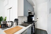 Introducing this fully furnished studio apartment, designed for immediate comfort. This space comes complete with essential furniture and modern accessories, ensuring a seamless move-in experience. Enjoy a fully equipped kitchen, strip-wood flooring, and elegant marble-tiled bathrooms. An elevator provides easy access to your apartment, regardless of the floor, and there's a convenient on-site laundry facility, streamlining your daily chores. Linens are provided, making you feel at home. As an added convenience, the building includes a gym that is available exclusively for residents. The gym is equipped with a range of equipment, making it easy for you to stay fit without leaving the property. The building also prioritizes the safety and security of its residents, with features such as a virtual doorman and video intercom system. You can have peace of mind knowing that only authorized visitors will have access to the building. Additionally, there is a dog wash area for your furry friend, making pet care a breeze. With easy access to public transportation and a range of dining, shopping, and cultural experiences in the surrounding neighborhood, this apartment offers a comfortable and convenient lifestyle in the heart of the Upper West Side. The Upper West Side is a neighborhood in Manhattan, New York City, situated between Central Park and the Hudson River. Known for its intellectual and artistic vibe, the area is home to many cultural institutions like the Lincoln Center and the American Museum of Natural History. The Upper West Side features a mix of architectural styles, including Beaux-Arts and brownstone buildings. It is a family-friendly neighborhood with excellent schools, numerous parks, and a variety of dining and shopping options. The area is also popular for its tree-lined streets and proximity to both Central Park and Riverside Park, offering residents and visitors ample opportunities for outdoor activities. New York City's heating season is until the end of May. Beginning around mid-April, window air conditioning will be installed in the apartment. You can request an earlier installation if needed. [SI]