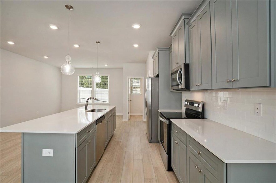 BRAND NEW HOME built in 2025. Home features 3 bedrooms plus a bonus room and 4 bathrooms. Modern living at its best. The kitchen is equipped with state-of-the art stainless appliances, oversize kitchen island, and pendant lighting. All bedrooms are located upstairs. The owners suite comes with a glass shower and double vanity. The bonus room is located on the first floor with direct access to a full bathroom. Exterior features a cozy patio with ceiling fan and a privacy fence. This home is conveniently located near major highways and minutes from Atlanta International Airport. This is a must see!