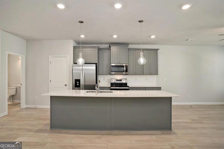 BRAND NEW HOME built in 2025. Home features 3 bedrooms plus a bonus room and 4 bathrooms. Modern living at its best. The kitchen is equipped with state-of-the art stainless appliances, oversize kitchen island, and pendant lighting. All bedrooms are located upstairs. The owners suite comes with a glass shower and double vanity. The bonus room is located on the first floor with direct access to a full bathroom. Exterior features a cozy patio with ceiling fan and a privacy fence. This home is conveniently located near major highways and minutes from Atlanta International Airport. This is a must see!